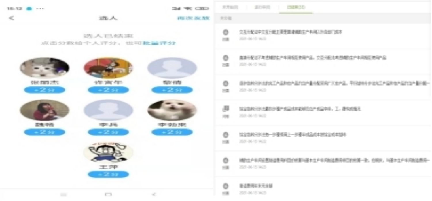 通过课前签到、课中互动留痕、课后统计等方式,实现了对学生学习状态的实时激励与监督。课前20-30 分钟,通过学习通平台发起签到,课前10分钟通过腾讯会议核对签到人数。直播过程中通过学习通平台发布投票、问卷、讨论、选人等活动并投屏显示未签到、未参加学生名单,及时为表现良好学生加分,督促提醒学生保持良好的状态, 也作为学生是否听课及评定过程分的依据。