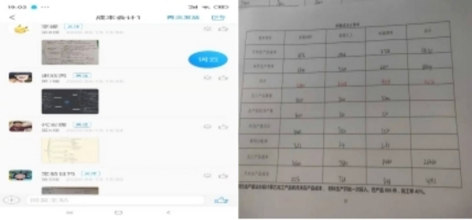 在线上教学期间,以绘制表格、图片等形式,将实训案例、账页表格等实训资料发放给学生,弥补了线上教学期间学生无法领取实训账页,无法开展实训教学的不足。在线上直播教学中,案例教学以手工模拟实训的方式进行,学生思路先行,边思边做边学,实现了互动参与式教学。通过学生的实际演练以及对演练流程和内容的总结,实现学做思一体的教学模式。培养学生的实践应用能力和总结分析能力。