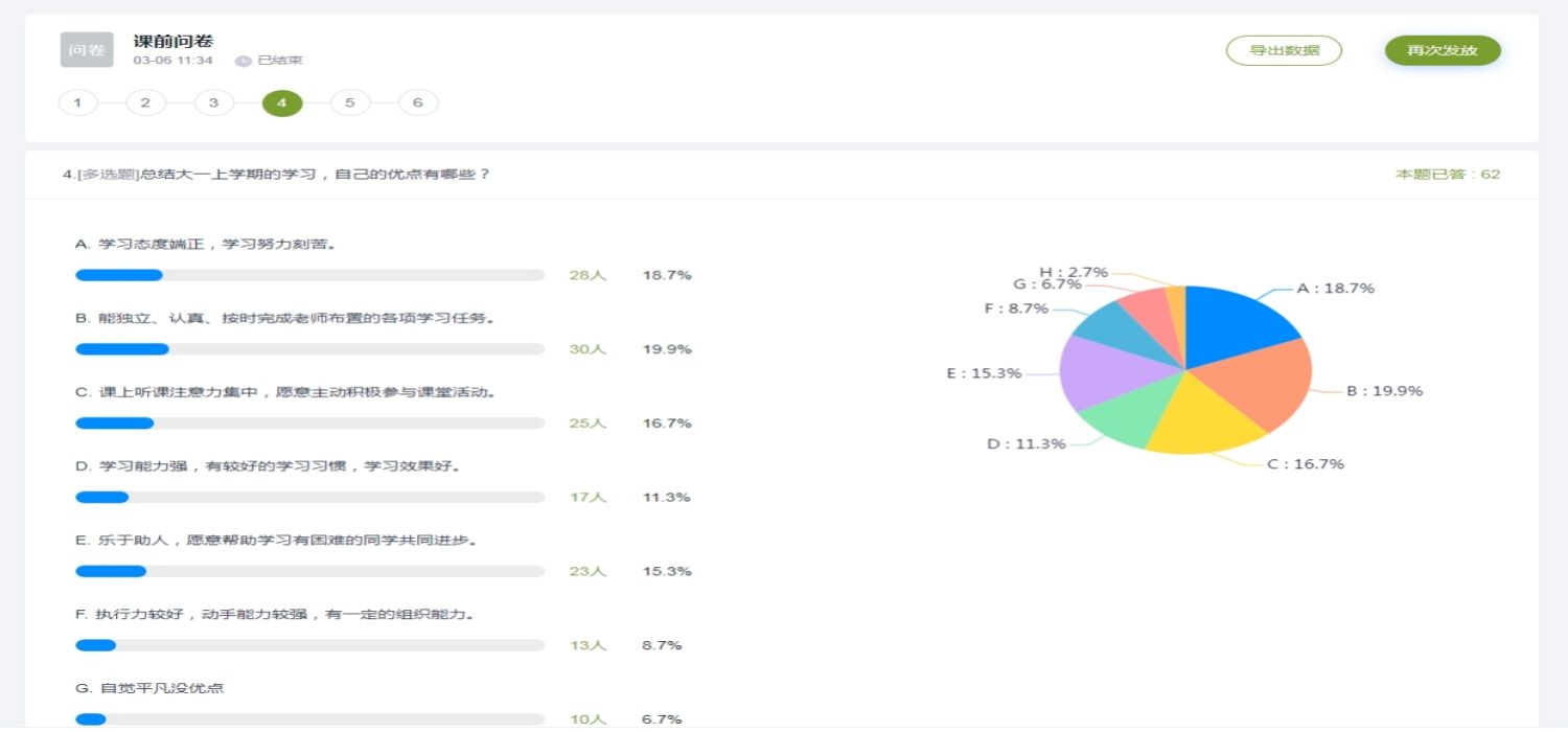 线上教学最大的不足就是师生缺少互动。因为不是面对面的上课,所以对于课堂效果很难得到即时的反馈。学生与教师之间交流、沟通不如线下教学方便。一些高难度的知识可能很难一次学会,教师也难以把控了解学生的学习程度和状态。针对这些问题,在线教学过程中不断增加实施互动环节,利用问卷、点评、讨论、课题测试等方式,调动学生的积极性,提高课堂的参与感。