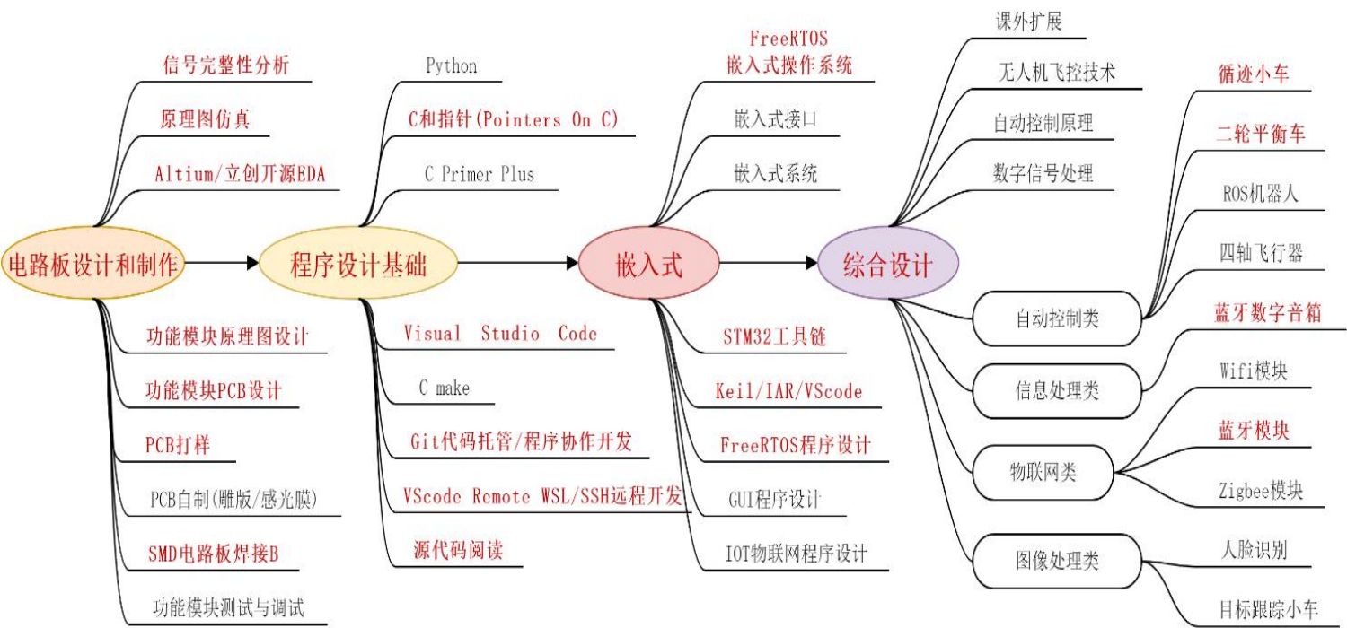 图1中红色字体内容为本学期课程所涵盖的教学目标,教学内容覆盖了20级《电子CAD及仿真技术》;19级《嵌入式操作系统》;18级《毕业设计》。其中《毕业设计》是项目引导式教学的终点,也是整体教学效果的最终考核。