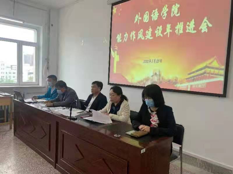 (文/任延民)为深入贯彻省委、市委关于开展“能力作风建设年”的安排部署及《哈尔滨学院“能力作风建设年”活动实施方案》的工作要求。近日,外国语学院在1527会议室开展“能力作风建设”推进会,本次会议采用线上线下相结合的方式,主要党员老师线下参会,现场实到34人,其余教职工在线上参会,会议由院长孙延弢主持。