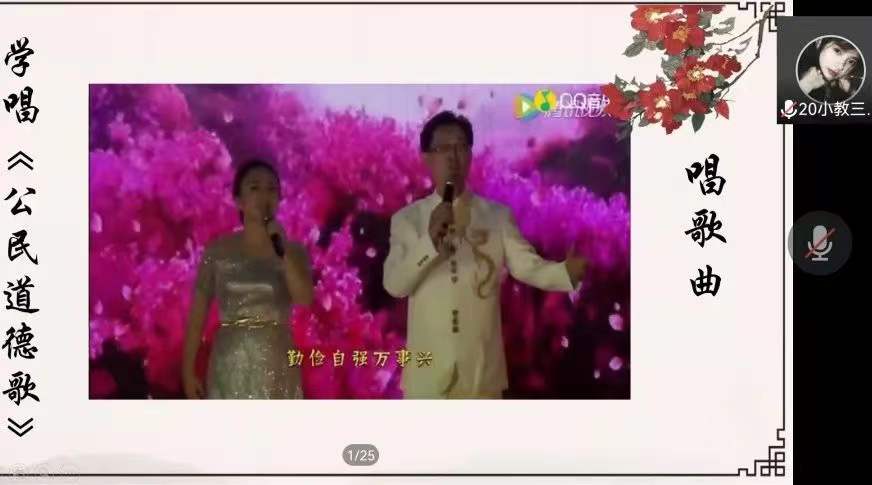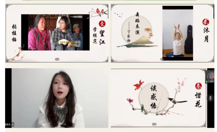 本次道德讲堂在《公民道德歌》的歌声中拉开序幕。唱歌曲过后,讲堂进入第二个环节——学模范,主持人为同学们讲述了战国时期爱国诗人屈原的故事,并带领同学们学习了“七一勋章”获得者张桂梅老师的相关事迹,诠释了本次道德讲堂的核心主题;随后,讲堂进入第三个环节——诵经典。学前21-1班崔楚玉同学和学前20-1班丁家钰同学分别用朗诵和舞蹈,表达了自己对道德教育的理解和对祖国的热爱;表演结束后,讲堂进入第四个环节——谈感悟。同学们通过主动开麦依次发言说出了自己在本次道德讲堂领悟到的感受,并谈了自己作为新时代青年应该如何践行爱国主义的想法。