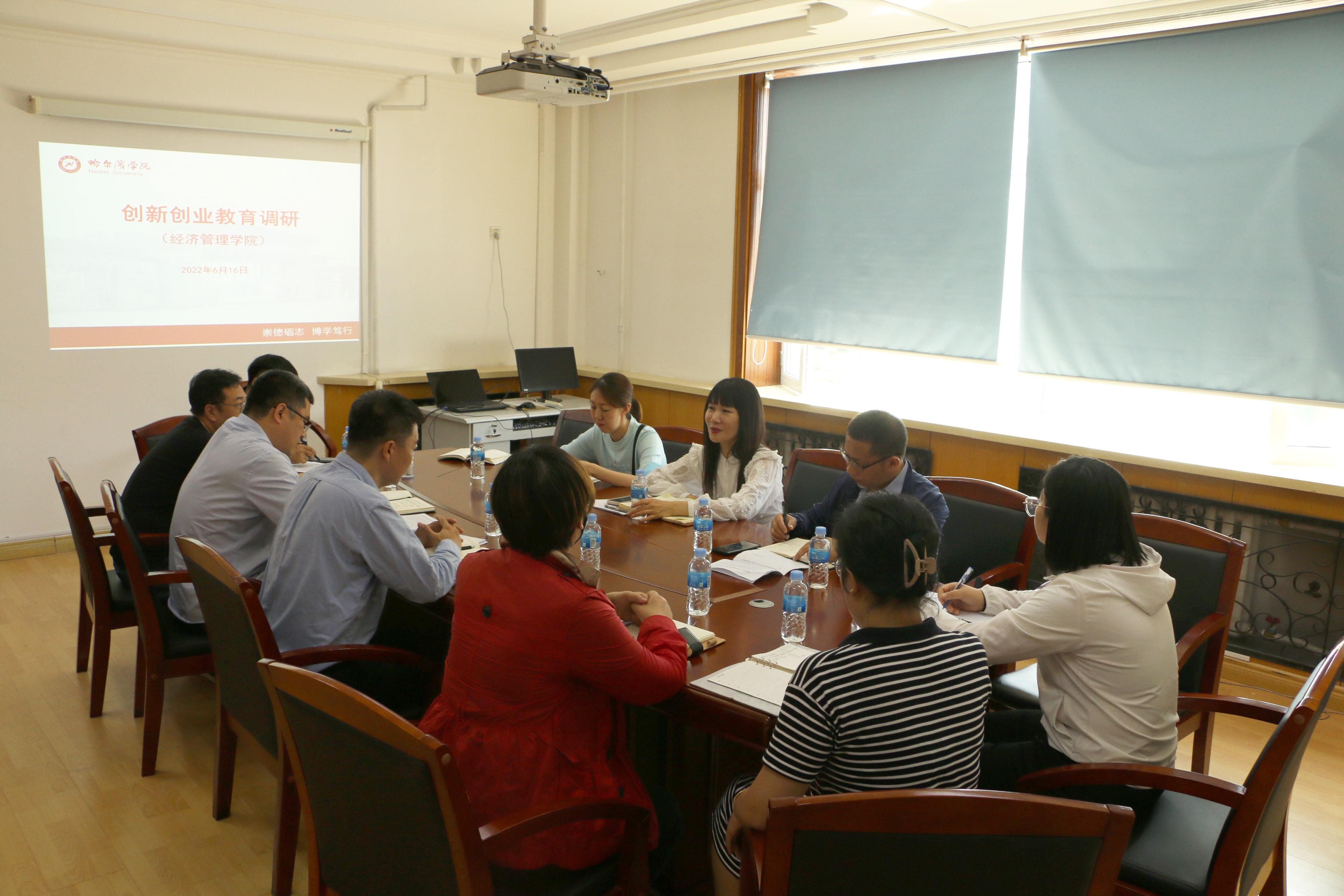 (文/沙迪)为深入贯彻学校第二次党代会精神,有效推动《哈尔滨学院“能力作风建设年”活动实施方案》的相关要求,6月16日上午,大学生创新创业中心(学院)黄丽丽主任、郭林副主任,创业导论教研室王球琳老师和宋宇同志深入经济管理学院开展调研工作。院领导班子、专业教师和辅导员代表参加调研会。