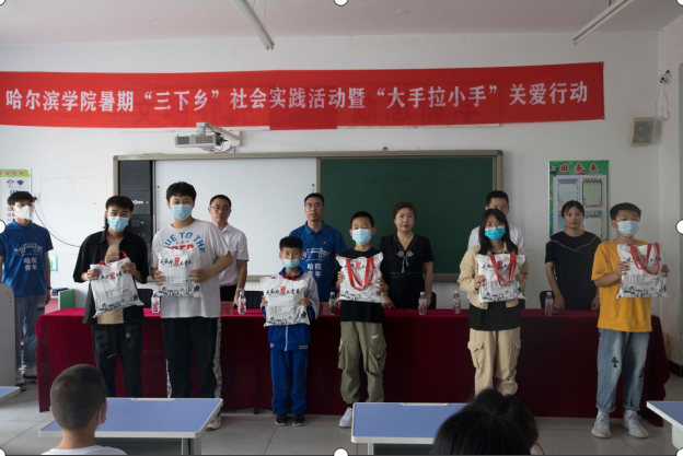 全体师生在双城区团委领导和乡政府领导的陪同下来到水泉乡中学开展“大手拉小手”关爱活动。一行人共同为水泉乡中学的“留守儿童”送出爱心礼物。我校教师教育学院徐灿、张书含等同学从天文知识、手工贺卡制作、趣味英语小游戏、我的大学生活等方面与孩子们开展互动学习。
