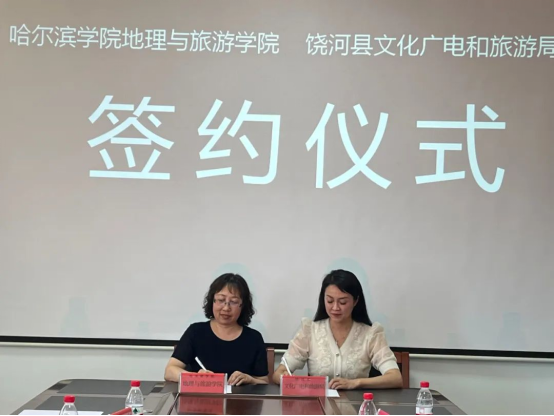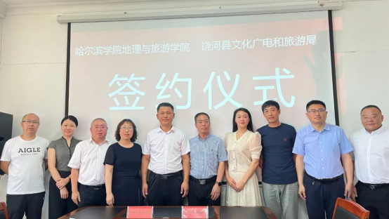 (文/陈曦)为深入贯彻落实学校“能力作风建设年”活动相关部署,发扬高校服务地方经济文化建设的精神,充分发挥校地双方优势,共同培养应用型人才,近日我校地理与旅游学院与饶河县文化广电和旅游局共同签署校地合作框架协议。饶河县副县长闫序波、饶河县文化广电和旅游局局长刘润佳、副局长刘辉、副局长刘艳明(黑龙江省文化和旅游厅援边工作人员)、饶河县旅游发展中心刘向阳副教授(哈尔滨学院援边工作人员),地理与旅游学院院长郭红、党总支书记方永秋、旅游管理系主任王朝辉、骨干教师陈曦、丛东来参加了此次签约活动。签约活动由刘润佳局长主持,郭红院长、刘润佳局长作为双方代表签约。