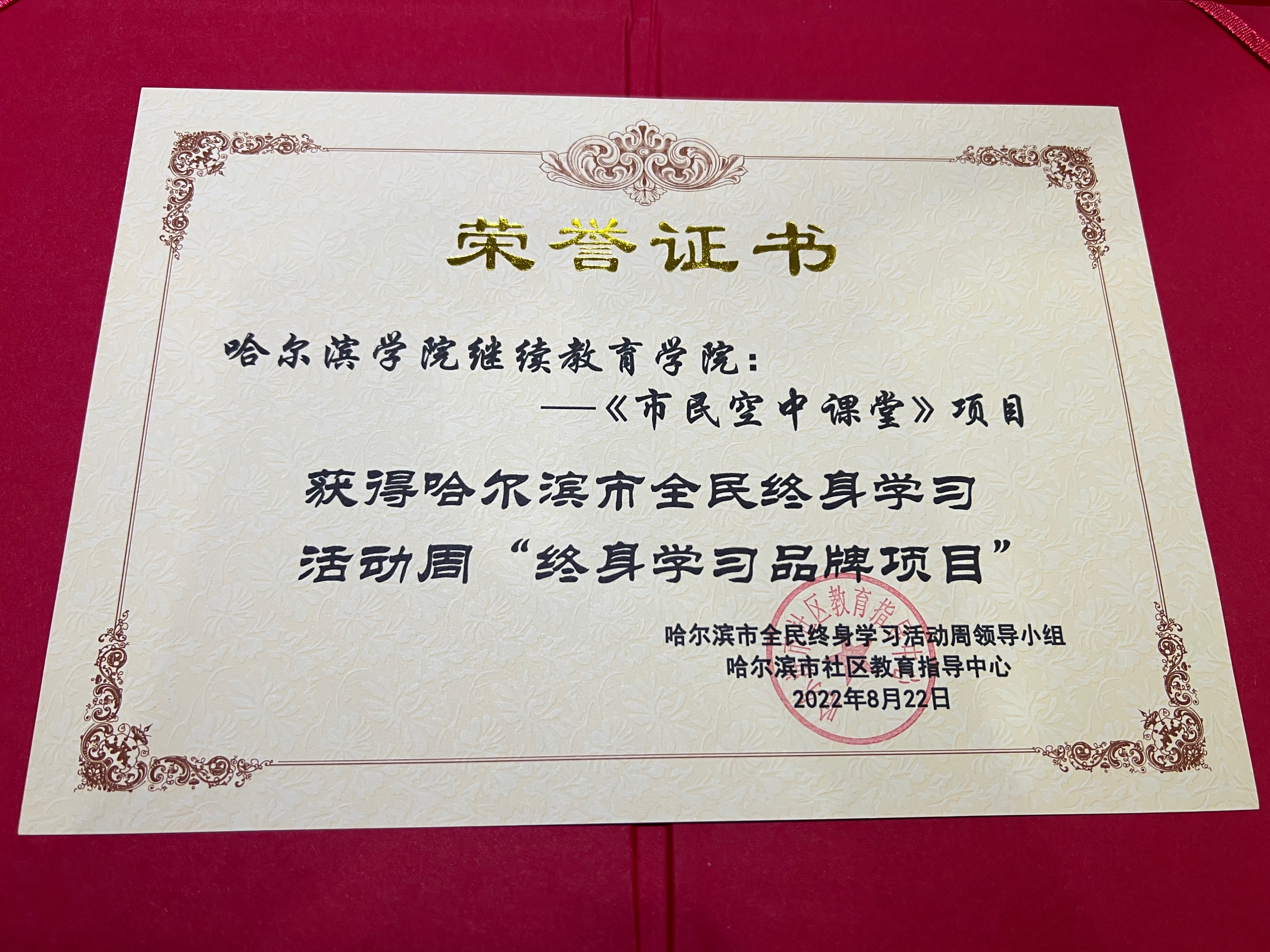哈尔滨市全民终身学习活动周“终身学习品牌项目”荣誉称号