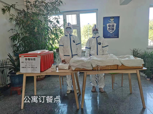 四、学生返校期间,由于黑龙江新冠疫情突然反弹,我校涉及疫区的学生被分散观测隔离在各寝室内。后勤管理处紧急制定订餐方案,由涉及学生的七个二级学院成立隔离订餐群,食堂工作人员24小时值班,通过微信为隔离学生进行订餐。记录订餐学生准确信息后将盒饭送至各公寓一楼与二级学院志愿者进行交接,由学院志愿者送到学生手中。现食堂订餐覆盖一公寓、二公寓、三公寓、四公寓、五公寓、七公寓、八公寓、八公寓隔离区、欧亚隔离区等九个隔离观测地点。