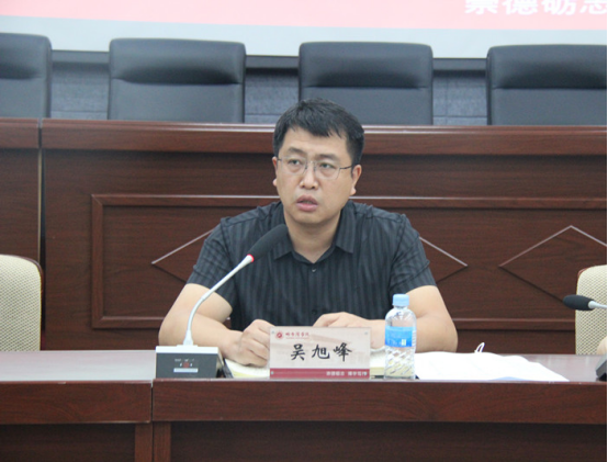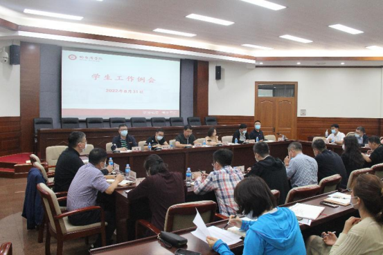 (文/卢涛)8月31日,我校在党政办公楼404会议室,以线上线下相结合的方式,召开学生工作例会,校党委委员、副校长吴旭峰出席会议。学生处处长于迪,团委书记路今钊,各学院书记、副书记,全体正处级、副处级辅导员、学工办主任及学生处、团委科级以上干部参加会议。会议由于迪主持。