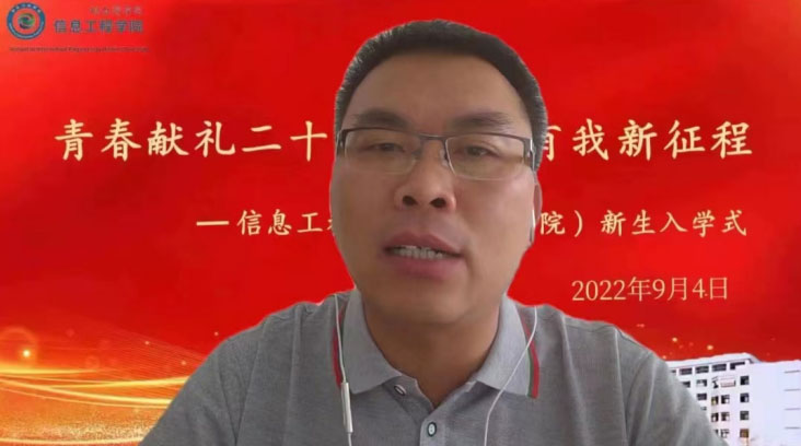 (文/陈思)9月4日上午,信息工程学院2022级新生入学式暨开学第一课在线上举行。信息工程学院院长王克朝、党委书记王克臣等学院领导出席入学式,学院各党支部书记、各系部办(中心)主任、师生代表及全体辅导员参加。学院正处级辅导员陈思主持仪式。