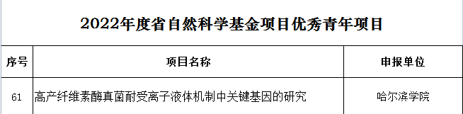 (文/刘群)2022年度黑龙江省自然科学基金项目评审结果近日揭晓,我校地理与旅游学院董士嘉博士主持申报的“高产纤维素酶真菌耐受离子液体机制中关键基因的研究”项目成功获批黑龙江省自然科学基金优秀青年项目,立项经费10万元。