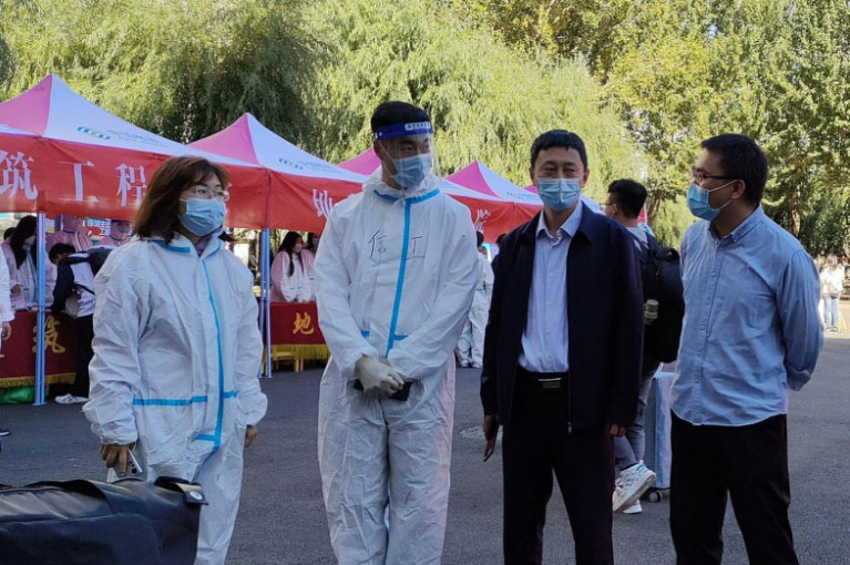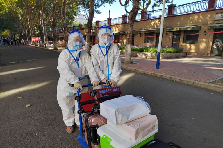 凌晨6点,由预备党员和入党积极分子等50名同学组成的青年志愿服务队早早穿好防护服,满怀期待等待新同学的到来。志愿者一路从核酸检测点、迎新接待站到公寓寝室楼,开展引导接待、搬运行李、公寓入住、配给餐食和取送快递等服务,以全程引导和全面服务帮助新同学完成报到入住。志愿者不停在校园里奔波忙碌,用行动和言语守护温暖着每一位新同学,让新同学找到家的感觉。他们严格落实疫情防控工作规定,在宿舍楼下对每一位新同学进行扫码、核查与消毒,确保新生安全有序入住。他们为新同学取饭送餐,将一份份热气腾腾的餐食配送到每间寝室。新同学们感动地说:“今天,我们深深感受到老师、学长学姐的用心负责,心里由衷的感谢!”