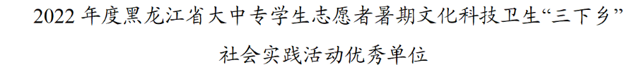 (文/顾相君)日前,共青团黑龙江省委根据《关于做好2022年度全国大中专学生志愿者暑期文化科技卫生“三下乡”社会实践活动总结工作的通知》要求,经个人(团队)申报、学校推荐、资格审查、专家评审,在优秀典型评选中我校团委荣获社会实践活动优秀单位。同时我校“乡村振兴促进团”在社会实践活动优秀项目评选中脱颖而出,荣获“优秀品牌项目”。