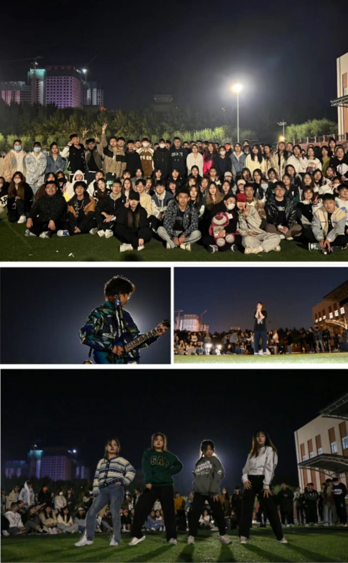欢度国庆,祝福祖国。10月1日晚,我院举行草地音乐节。音乐节以同学们齐声合唱《我的祖国》拉开序幕,歌曲、舞蹈、相声和乐器表演异彩纷呈,高潮迭起,掌声和欢呼声响彻整个操场,同学们载歌载舞,庆祝伟大祖国母亲七十三岁华诞。