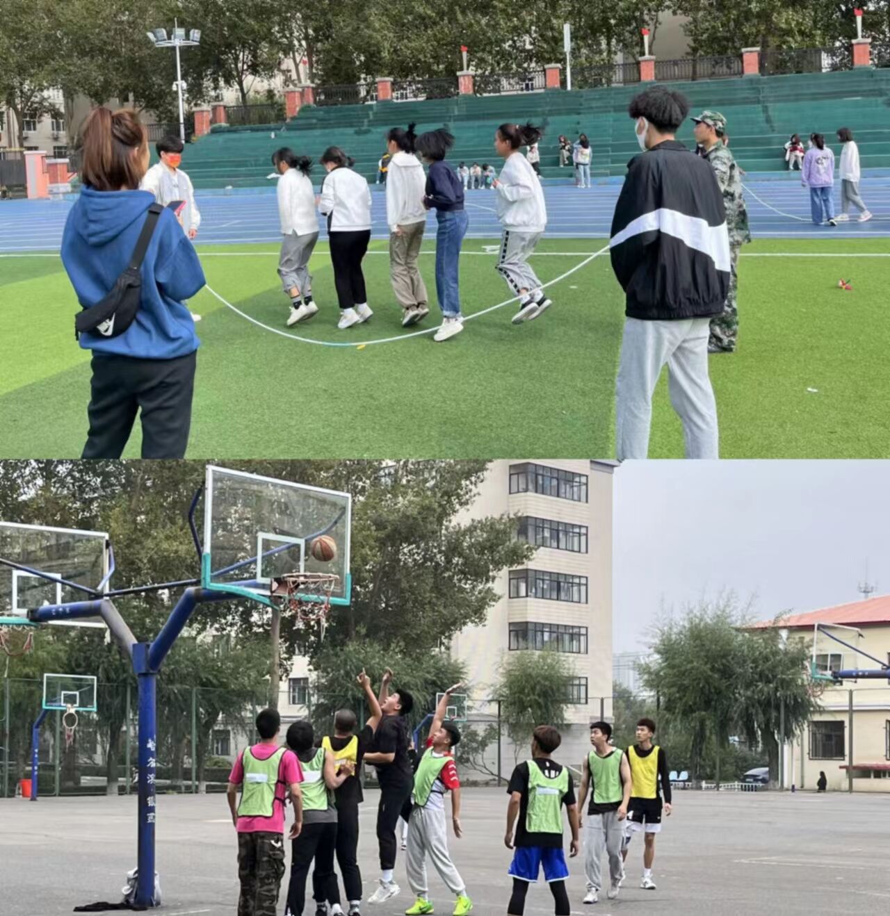 强国有我,锻炼体魄。为培养学生团结合作精神,锻炼坚强的毅力,我院于10月1日、2日举办了为期两天的趣味运动会,跳绳、打篮球和踢毽子,同学们积极参与、各展神通,以拼搏的韧劲收获喝彩。