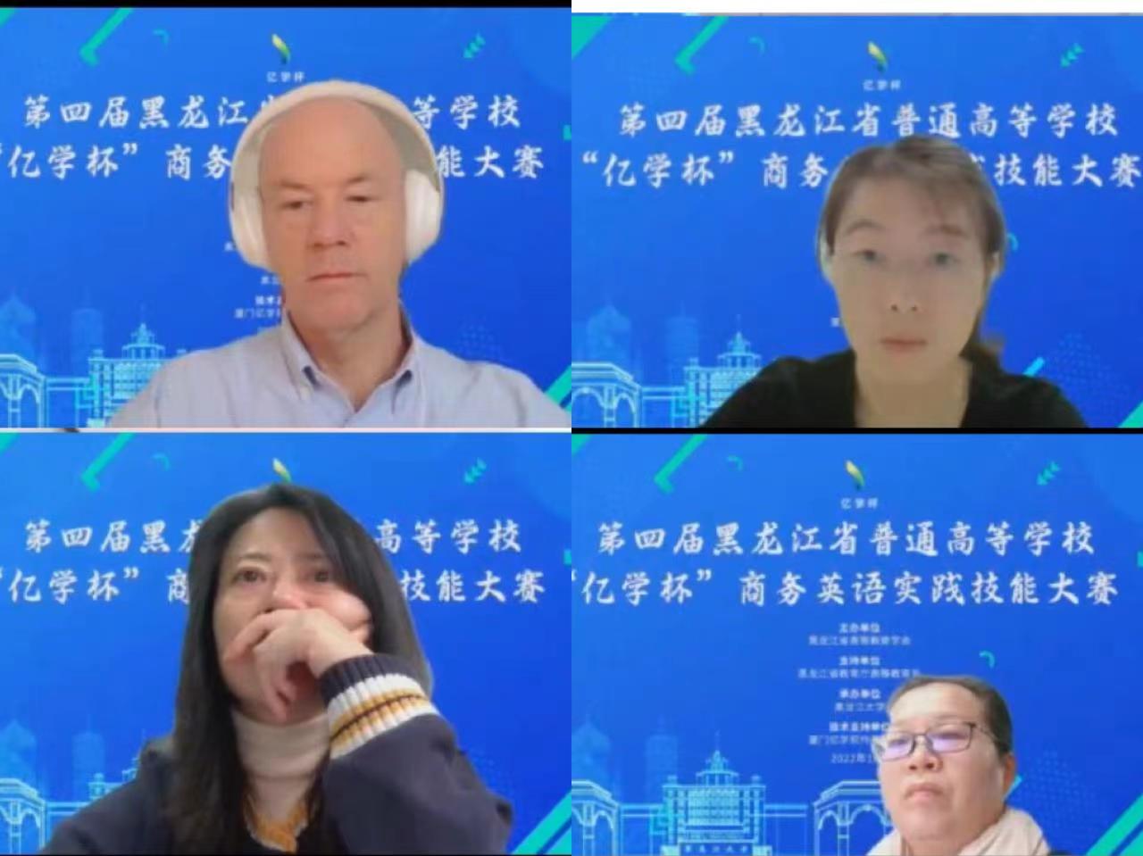 2022年9月24日至10月9日,由黑龙江省高等教育学会主办,黑龙江省教育厅高等教育处支持,黑龙江大学承办的第四届黑龙江省普通高等学校“亿学杯”商务英语实践技能大赛竞赛决赛环节于线上成功举行。来自哈尔滨工程大学、黑龙江大学、哈尔滨师范大学、哈尔滨商业大学、齐齐哈尔大学、大庆师范学院、牡丹江师范学院、黑河学院等18所院校、32支参赛队伍展开了激烈的角逐。在带队教师袁晶的悉心、专业指导下,由我校商务英语系2019级张添泽、安悦、田金垒和潘杨同学所组成的APEX队不畏强手、稳定发挥,经历云平台竞赛环节、主题演讲环节以及视频连线问答环节,最终以第一名的成绩成功晋级国赛,并与哈尔滨工程大学和黑龙江大学的两个参赛队伍同时获得省一等奖。