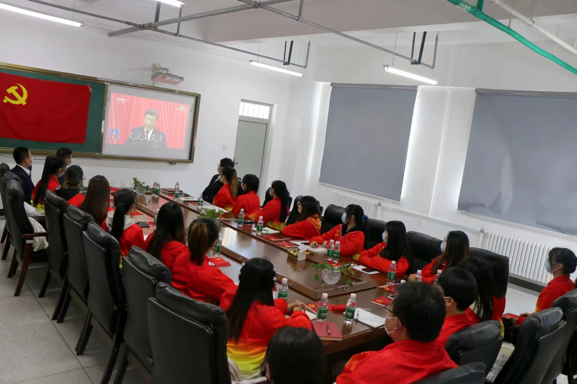 食品工程学院党委副书记吕林海,学工干部及部分学生党员代表集体收看党的二十大开幕会直播。