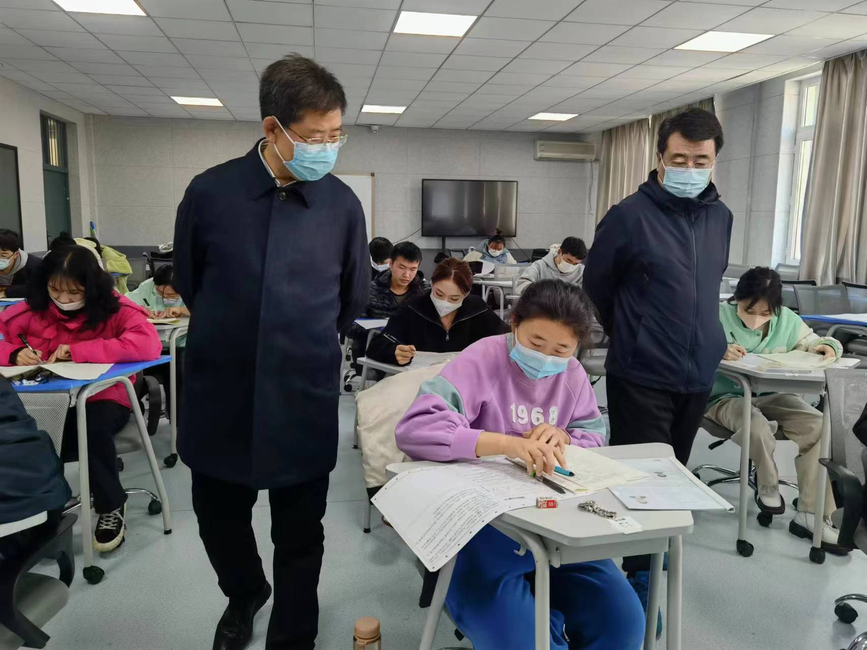 省教育厅、招考院高度重视本次考试的组考疫情防控工作,省教育厅党组成员、副厅长姜同河,教师工作处副处长王岩于考试当天到我校巡视指导考试组织实施工作,针对疫情防控工作提出了具体要求。为确保考试的顺利实施及校内师生的安全,校长于成学、副校长孙红镱亲临考场督导考试工作。