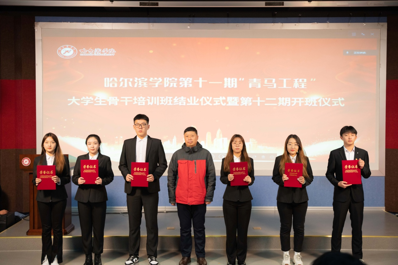 首先,校团委负责人张玉娟宣读第十一期青马工程结业学员、优秀学员名单。学生处副处长丛全喜为第十一期“青马工程”结业学员代表颁发证书;校党委宣传部部长李铁岩为优秀学员代表颁发证书。信息工程学院侯帅同学作为第十一期青马工程优秀学员代表发言并与新一期青马工程参训学员分享了学习心得。