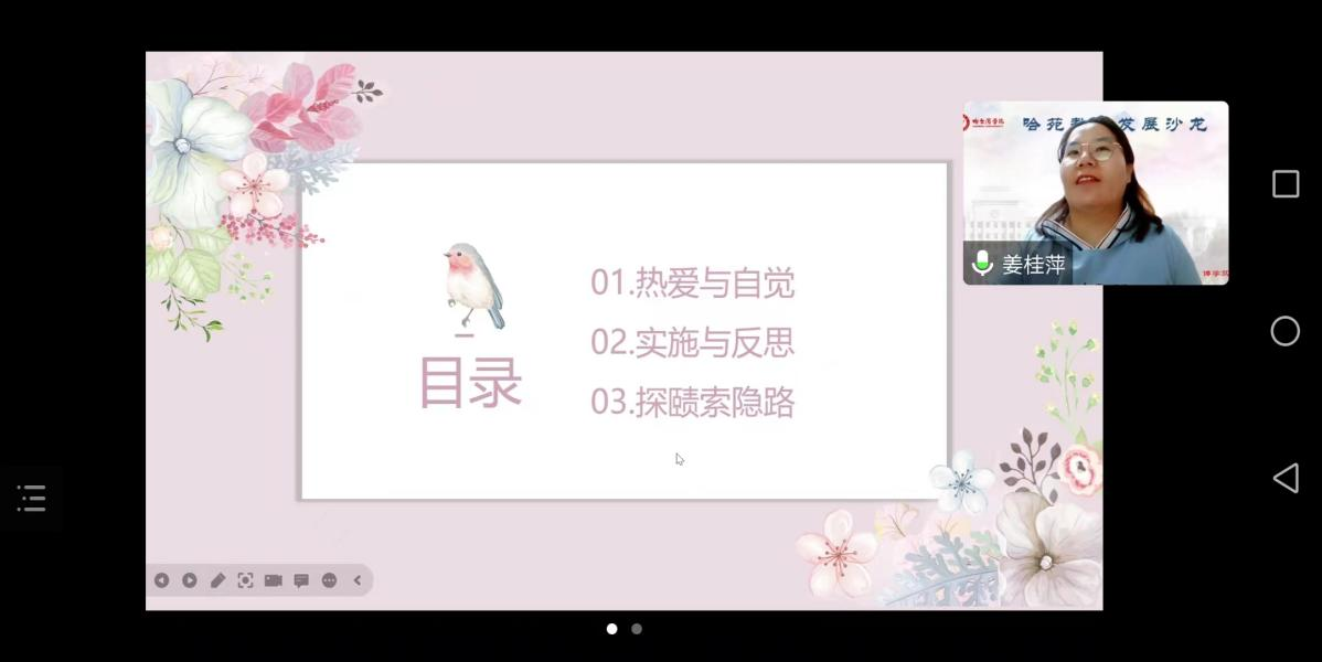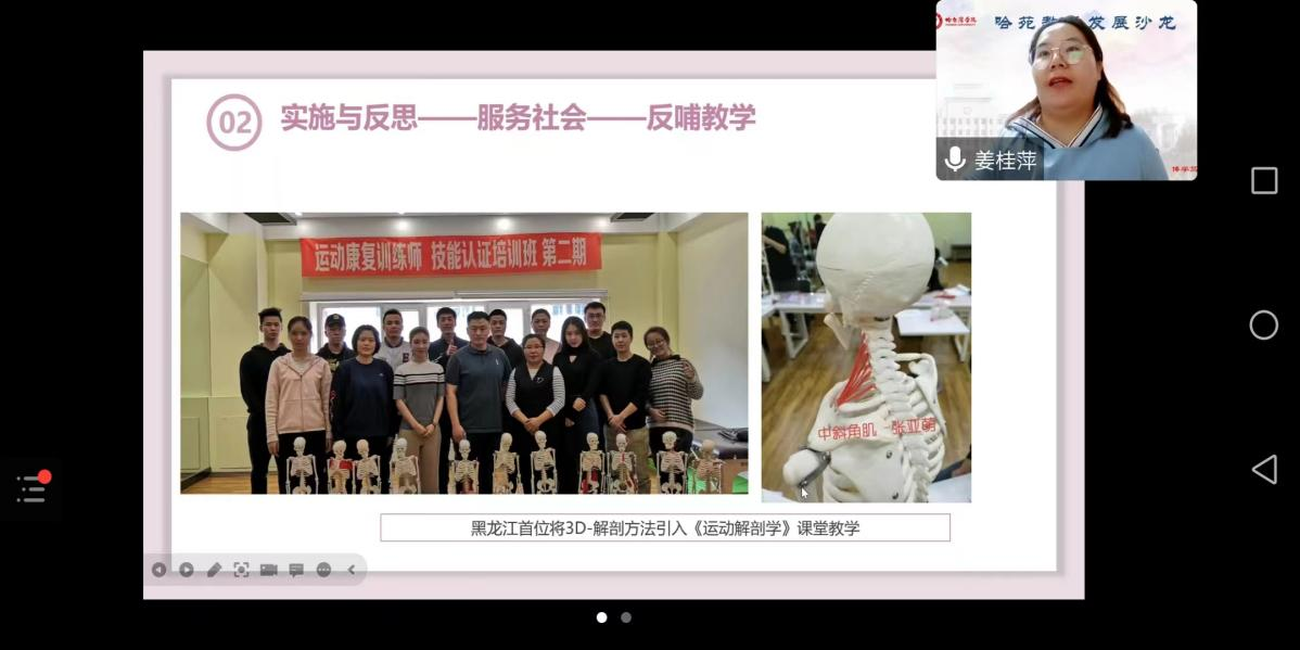 (文/李世超)近日,体育学院副教授姜桂萍老师受邀教师教学发展中心,主持第四十三期“哈苑教学发展沙龙”活动,针对新入职教师和全校中青年教师做了“铸魂育人创新之路探赜”主题讲座。讲座吸引了全校两百多人在线学习。