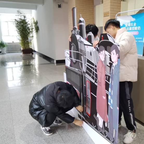 作品完成后,陈列在教学楼里,加强了校园文化建设,通过环境建设,引导学生广泛践行社会主义核心价值观,进一步深化爱国主义、集体主义、社会主义教育,着力培养能够担当民族复兴大任的时代新人。