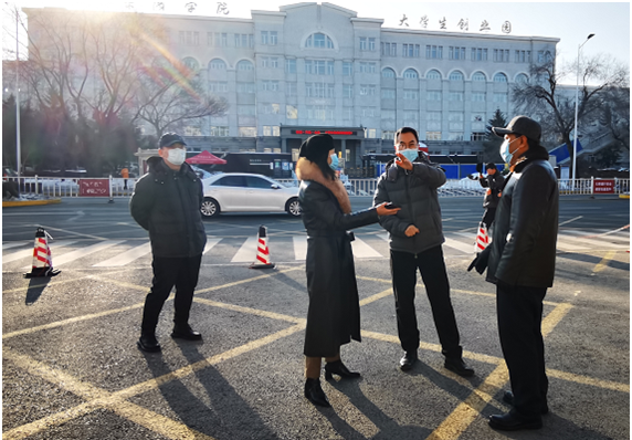 张宏光处长一行现场查看了校园周边情况,认真了解了我校疫情防控具体措施和落实第43号公告情况,详细询问了学校封闭管理、核酸检测、弹性坐班、信息排查及线上教学的落实情况。
