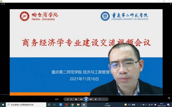本次专业建设交流活动邀请了教育部经济学教指委委员、重庆第二师范学院经济与工商管理学院院长马正兵教授进行主题发言。马正兵教授全面分析了商务经济学专业在国内外办学现状、存在的问题及未来发展趋势,结合所在学校商务经济学专业人才培养及专业建设经验进行了详细分享。主题发言结束后,与会教师与马教授进行了深入交流,就队伍建设、课程设置、实验实训、毕业论文、实习就业等方面进行研讨。