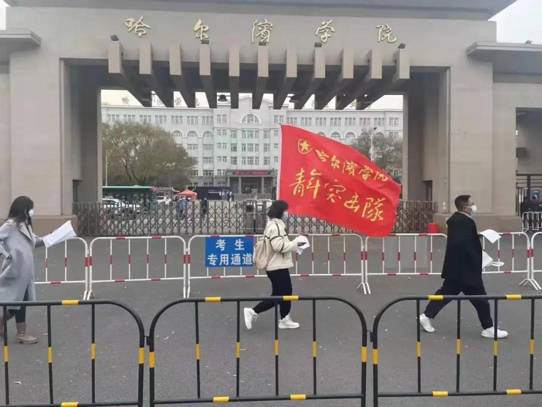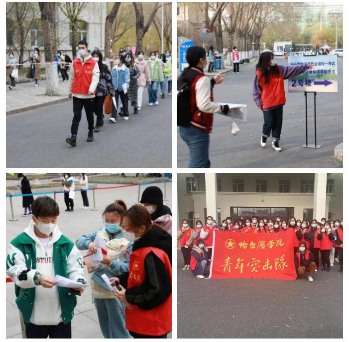 10月29日,青年突击队接到全国中小学教资考试哈尔滨学院考点校园秩序维持任务,刚刚加入青年突击队的队员们便第一时间投入到了紧张的志愿工作中。校级青年突击队、土木建筑工程学院青年突击队分别在学校大门口、5号考场、2号考场前组织考生们有序排队、耐心引导考生们扫描健康码和行程码、协助工作人员开展工作并维持现场秩序。天气虽然寒冷,但队员们坚守岗位,冲锋在前,使得教资考试高效、安全、有序进行。