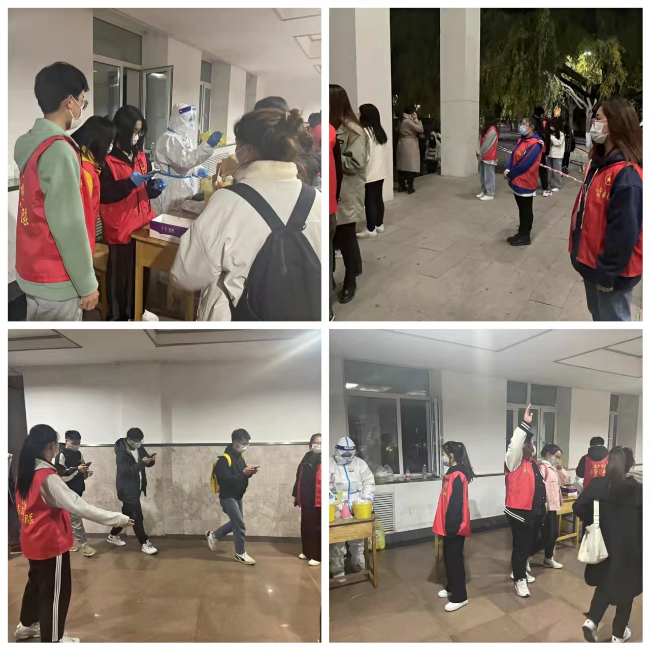 10月30日16时,青年突击队接到核酸检测工作任务。队员们刚刚回到寝室休息,又再次出发,他们不顾白天工作的疲惫,配合医护人员连续奋战5个半小时完成了1629名在校外参加教资考试学生的核酸检测。
