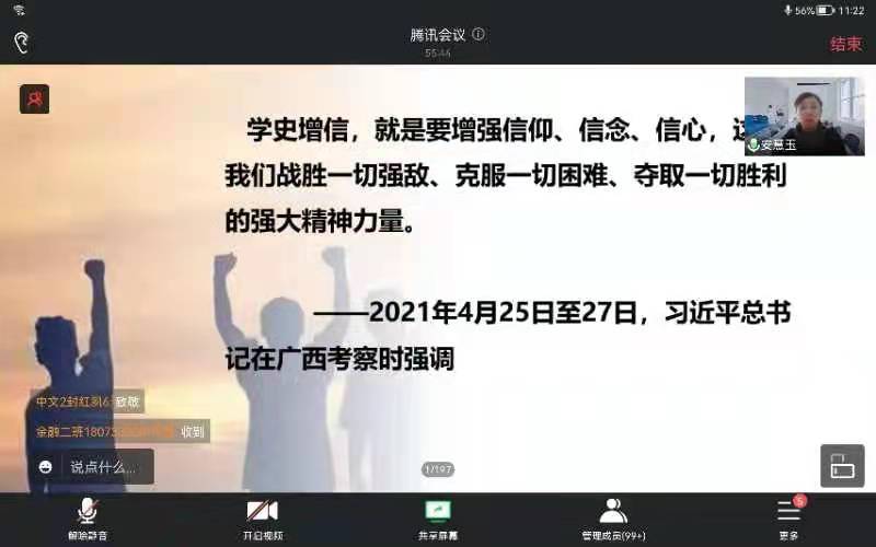 第一期主题团课主讲教师是来自马克思主义学院的教授安慧玉老师,安老师主讲题目是从百年党史看中国共产党人顶天立地的信仰。安老师以马克思主义思想为出发点,深刻的阐释了在中国共产党领导下中国发展的历史巨变。中国人作为信仰坚定者,终究看到了胜利。中国共产党引领革命的航船,劈波斩浪,开天辟地。从一艘小船到一个大党,如今中国共产党已经发展成为了一个走过100年光辉历史、在最大社会主义国家执政72年、拥有9191.4万党员的世界第一大党、世界最坚强的政党。正如习近平总书记所说:“人民有信仰,民族有希望,国家有力量。”整个团课,学生一直在留言区与老师积极互动,“信仰”两个字持续刷屏。