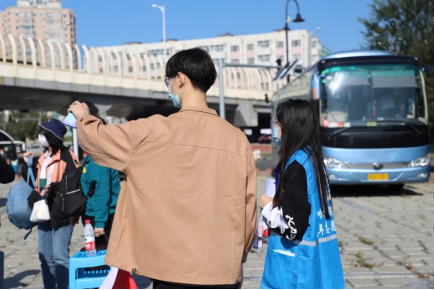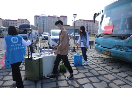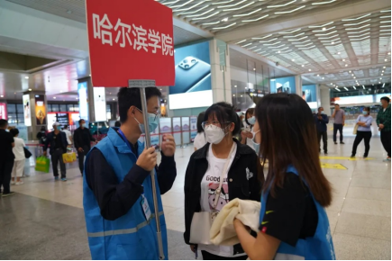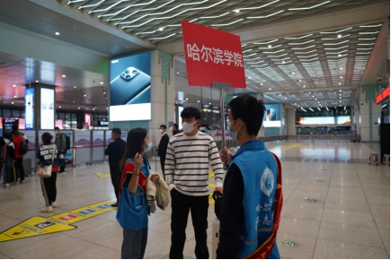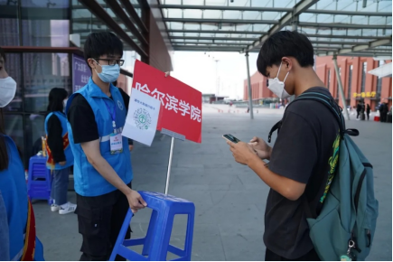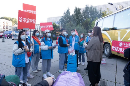 清晨六点多,陆续有祖国各地的新同学到达哈尔滨。哈尔滨站、哈尔滨西站、哈尔滨东站的迎新志愿者们开始忙碌起来,他们为新同学提行李、讲解报到注意事项、引导新同学和家人们快速出站乘坐专用接站车。