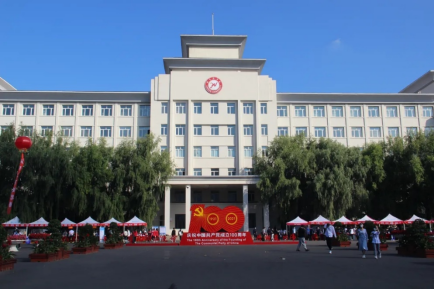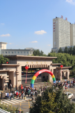 哈尔滨学院庄重地伫立在秋日的晨光里