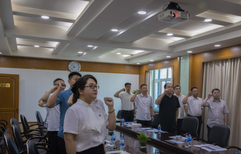 会上,组织部副部长沙迪带领支部同志学习省优秀党务工作者--组织部部长刘洪达同志先进事迹,组宣党支部书记陈思围绕“中国共产党为什么行”为支部同志讲授党课。党课结束后,全体支部党员面对鲜艳的党旗,高举右手,庄严宣誓,通过重温入党誓词,再一次提醒我们每一名共产党员都不能忘记自己的承诺,不能忘记自己入党的誓言,时时按照入党誓词的要求、用党章这面镜子,检查对照自己的一言一行,经常进行自我教育,自我警醒。