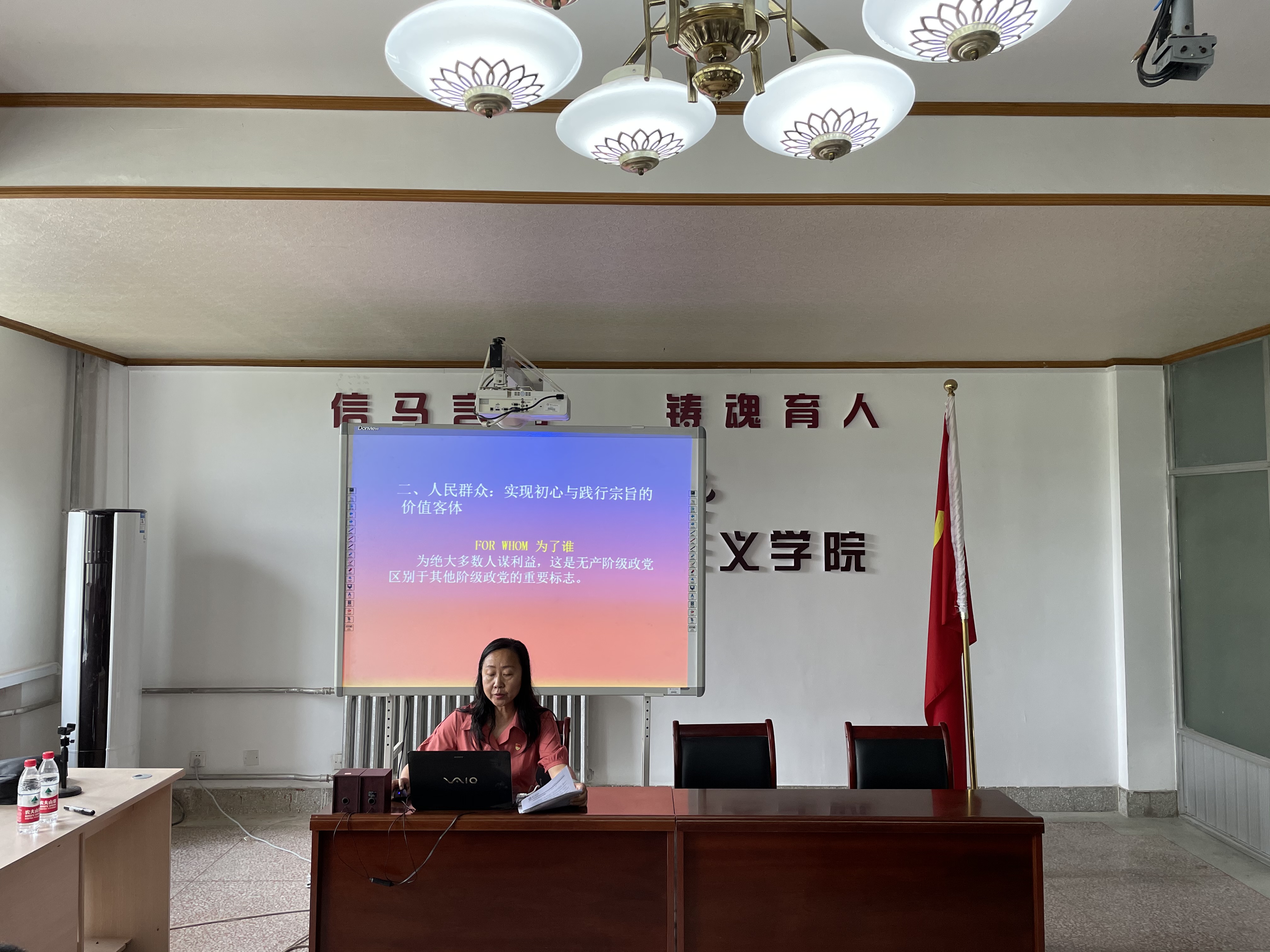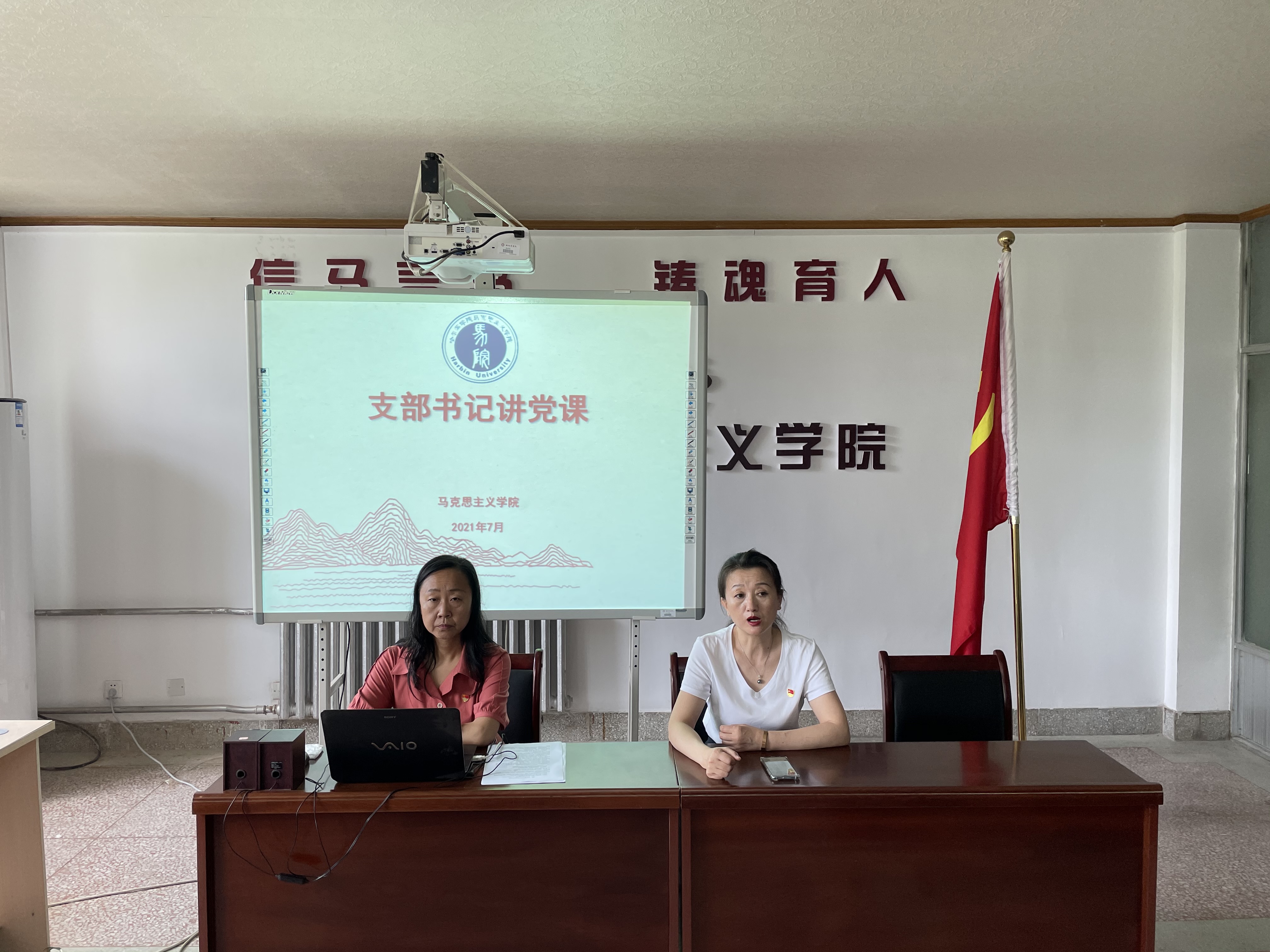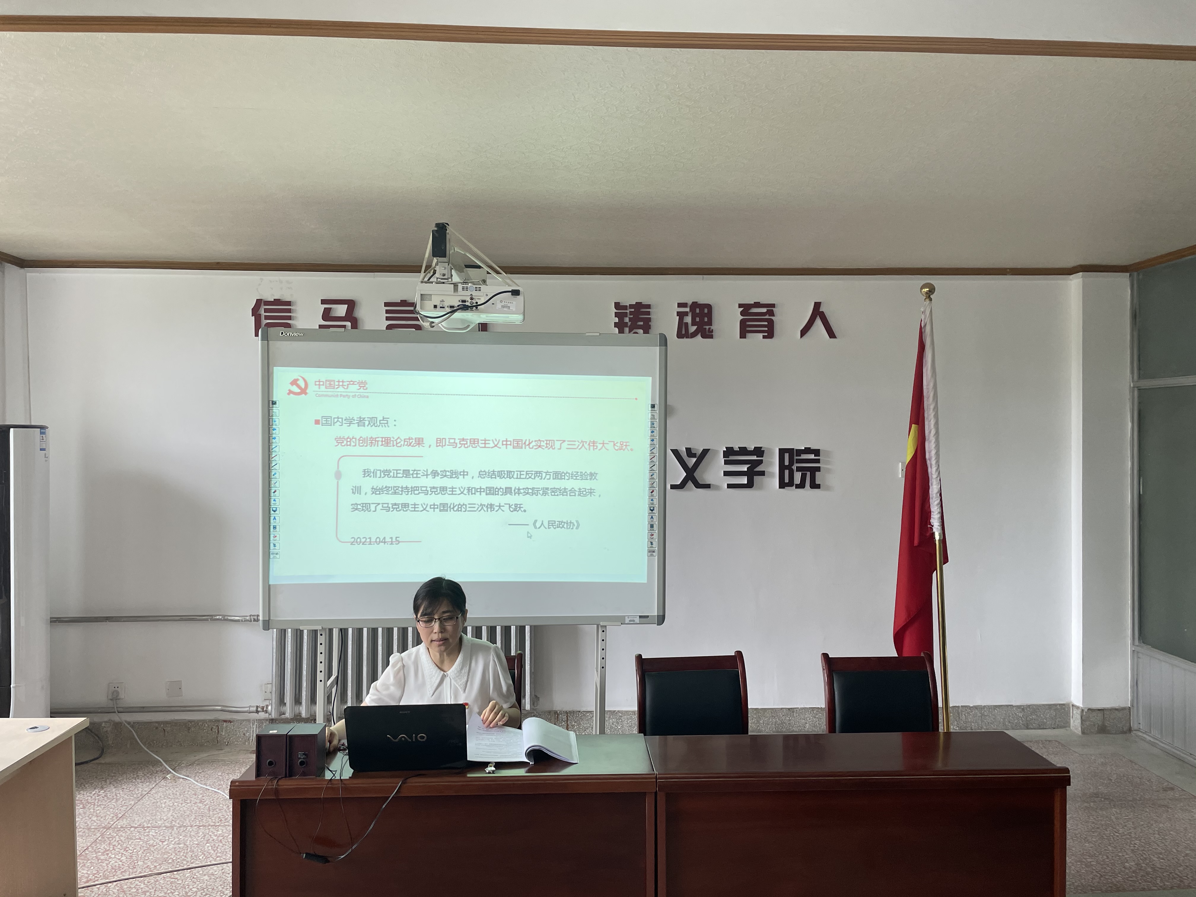 7月7日上午9时,马克思主义学院党总支组织全体党员开展“支部书记讲党课”党史专题学习活动。周惠杰、李景瞳两位支部书记分别以《深刻理解中国共产党的初心和宗旨》和《历史走向未来——学习中国共产党的理论创新成果》为主题讲授专题党课。