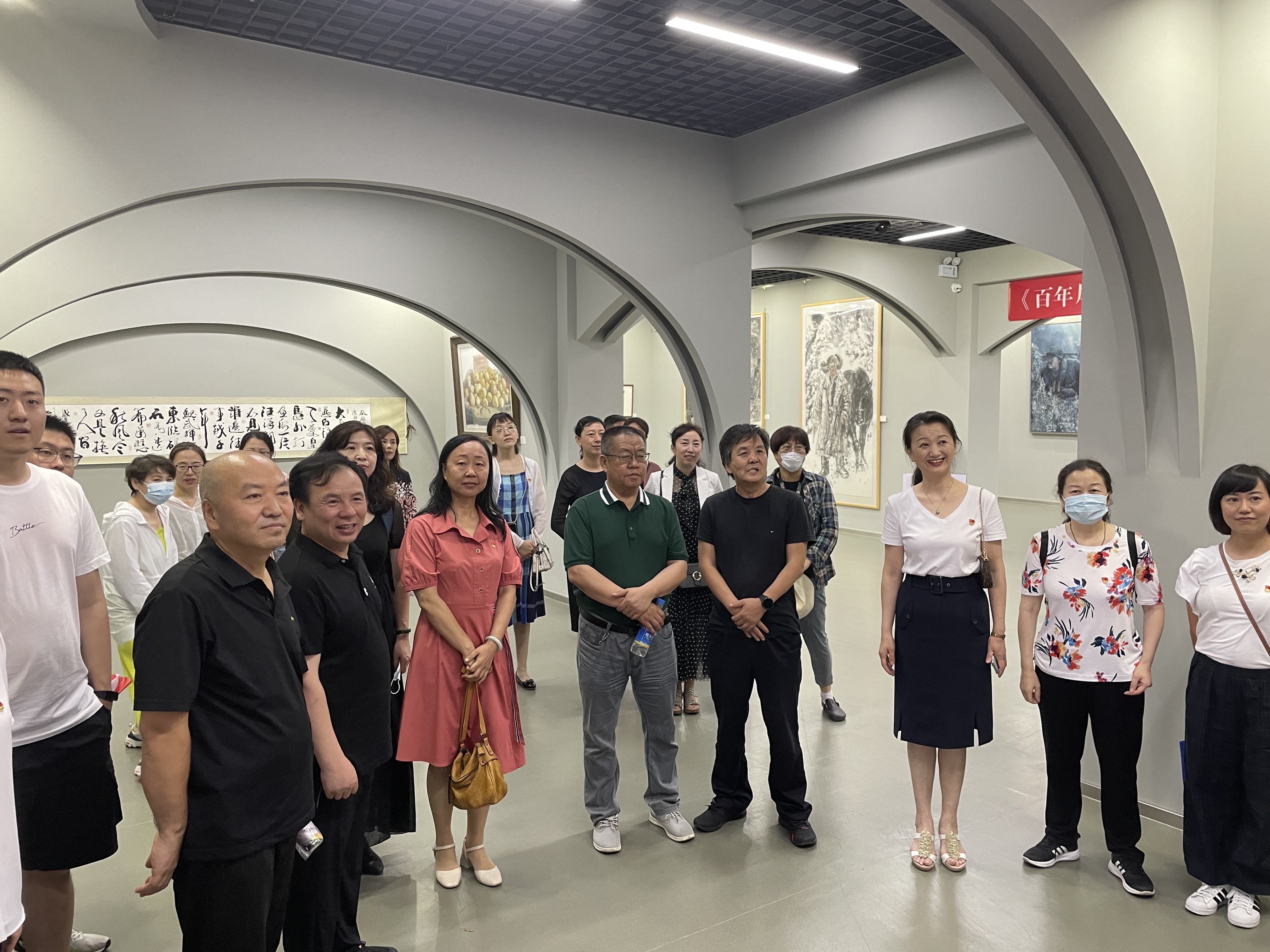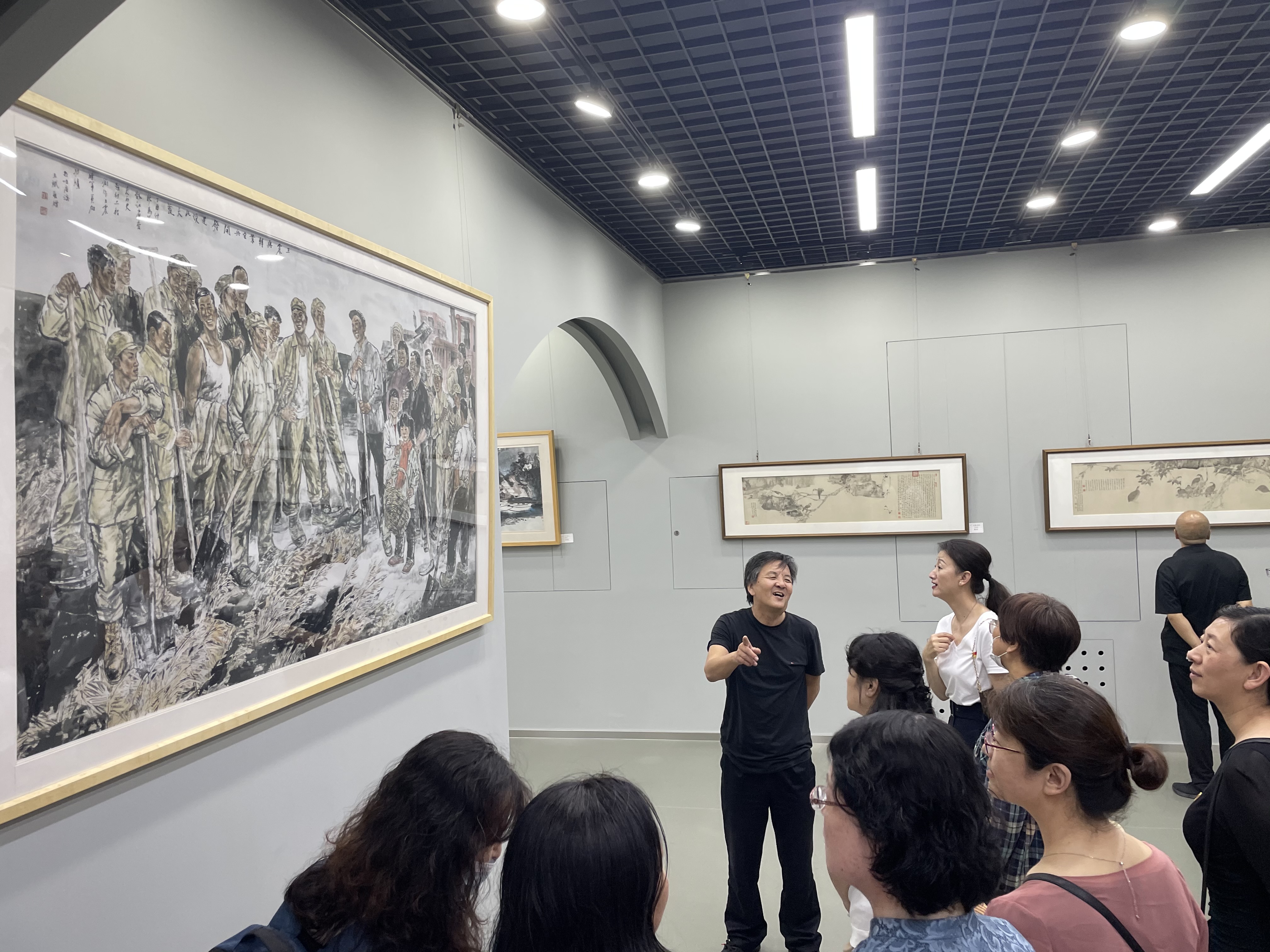 党课结束后,马克思主义学院党总支全体党员赴欧亚校区参观了党史学习教育专题艺术作品展。艺术与设计学院院长王同兴同志为我们进行了精彩的讲解。王院长就艺术作品的创作思路、创作方式、创作主题多个视角赋予每一件艺术作品红色的艺术灵魂,给全体党员上了一堂生动的党史教育课和艺术鉴赏课。展览作品主题鲜明,表现形式丰富,艺术家们高水平的作品,给我们带来了思想和艺术上的双重收获。