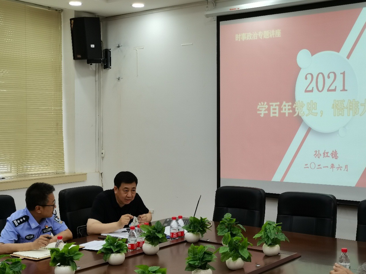 会上,副校长孙红镱紧紧围绕习近平新时代中国特色社会主义思想,以“学百年党史,悟伟大精神”为主题,从党史学习教育、伟大精神谱系、龙江四大精神、城市大学精神四个方面为保卫支部全体党员上了一堂生动的党史教育课。他从党史学习教育的重要意义、学习重点、务求实效讲起,深入浅出的分析了伟大精神谱系的理论内涵、时代意义、精神特质和传承创新,重点讲述了龙江四大精神“东北抗联精神”、“北大荒精神”、“大庆精神”、“铁人精神”的起源和丰富内涵,同时提出城市大学精神,一座城、一所大学、一种精神,要把学校的大学精神、大学文化、大学概念充分融汇贯穿到我校的发展中来。他结合保卫处工作实际和落实好“学党史、办实事”各项工作任务,为学校安全保卫工作下一步发展指明了方向。