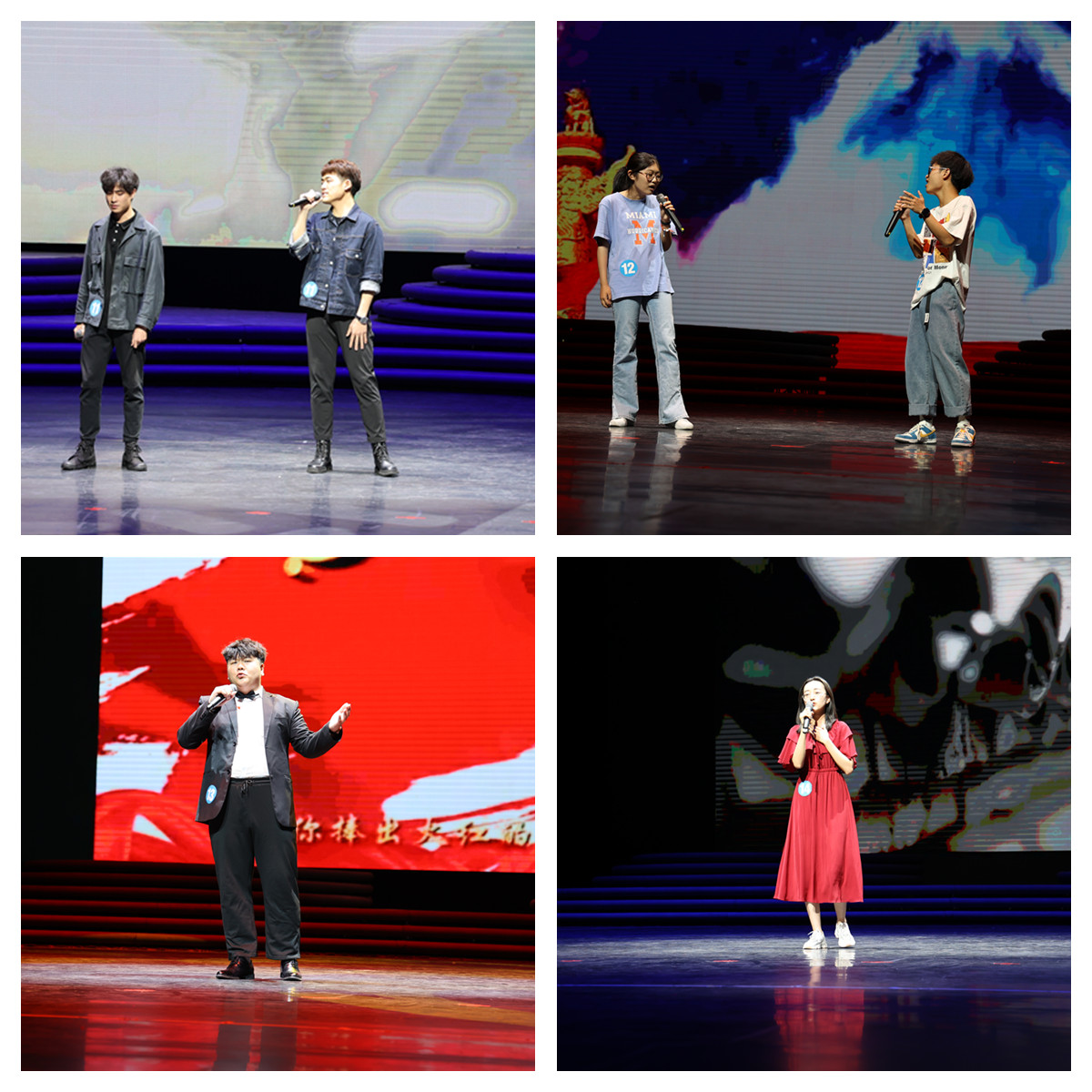 参赛的14名组选手各展所长,用优美嘹亮的歌声将全场气氛推向高潮。其中,来自音乐与舞蹈学院的刘佳乐演唱的《灯火里的中国》洗涤了在场观众们的心灵,令人如痴如醉;来自食品工程学院的金一凡以低沉的嗓音演唱了一首《只要平凡》,向观众诉说着一段旧日时光;来自音乐与舞蹈学院的张凯歌演唱的《把一切献给党》更是悦耳动听,荡气回肠。其他选手的表演也都各有千秋,他们有的充满深情的讲述着对祖国的热爱,有的唱出了人世间的大爱无疆,比赛在观众们热情的掌声和欢呼声中落下了帷幕。