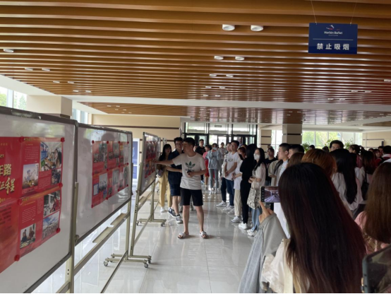本次图片展再现了中国共产党的光辉历程和党带领全国人民英勇奋斗的光荣历史。众多学生被吸引前来阅读红色故事,在一幅幅图片文字中重温共产党发展时期的烽火岁月,从上海的星星之火到南昌的军旗升起,从井冈山八角楼到延安宝塔山,从西柏坡到天安门,追随着先辈的红色身影,重温党的百年历史;从上海的石库门到北京的天安门,从南湖上的小小红船,到“复兴号”巨轮,中国共产党由小变大,由弱变强,带领中华民族从一个胜利走向另一个胜利,从一个辉煌迈向另一个辉煌,推进中华民族伟大复兴的历史伟业,迎来了中华民族从站起来、富起来再到强起来的伟大历史飞跃。
