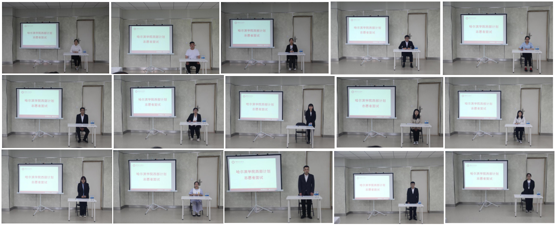 为积极响应习近平总书记对广大毕业生的号召,“到西部去、到基层去、到祖国和人民最需要的地方去”,践行志愿服务精神,校团委于6月10日下午1:30在丁香剧场301室组织开展“哈尔滨学院西部计划志愿者面试”。招生就业处处长丛军、团委书记于迪、招生就业处副处长张成强、团委副书记路今钊、学生处副处长庞哲担任本次面试评委。