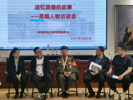 为庆祝中国共产党成立100周年,缅怀革命先烈,弘扬时代精神,我校于6月2日下午在龙江四大精神展馆开展了“追忆英雄故事——英雄人物访谈会”。本次活动邀请到92岁高龄的东北抗联老战士、市公安局离休干部王济堂老英雄到校进行访谈,校党委副书记张鸿雁、校团委工作人员、各学院分团委书记和学生代表们参加了活动,访谈会由校团委副书记路今钊主持。