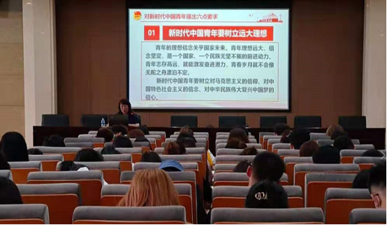 宋老师首先带领学员们简单回顾中国共产党的百年历程,论证中国共产党的建立具有划时代意义;剖析当代青年所处的历史条件,所应承担的历史使命,从坚定信仰信念、砥砺奋斗前行、练就过硬本领、锤炼品德修为等方面,激励同学们勇担时代重任;最后,分析在党的领导下,共青团工作的战略任务,团结带领广大团员青年为实现中华民族伟大复兴的中国梦作出应有的贡献!