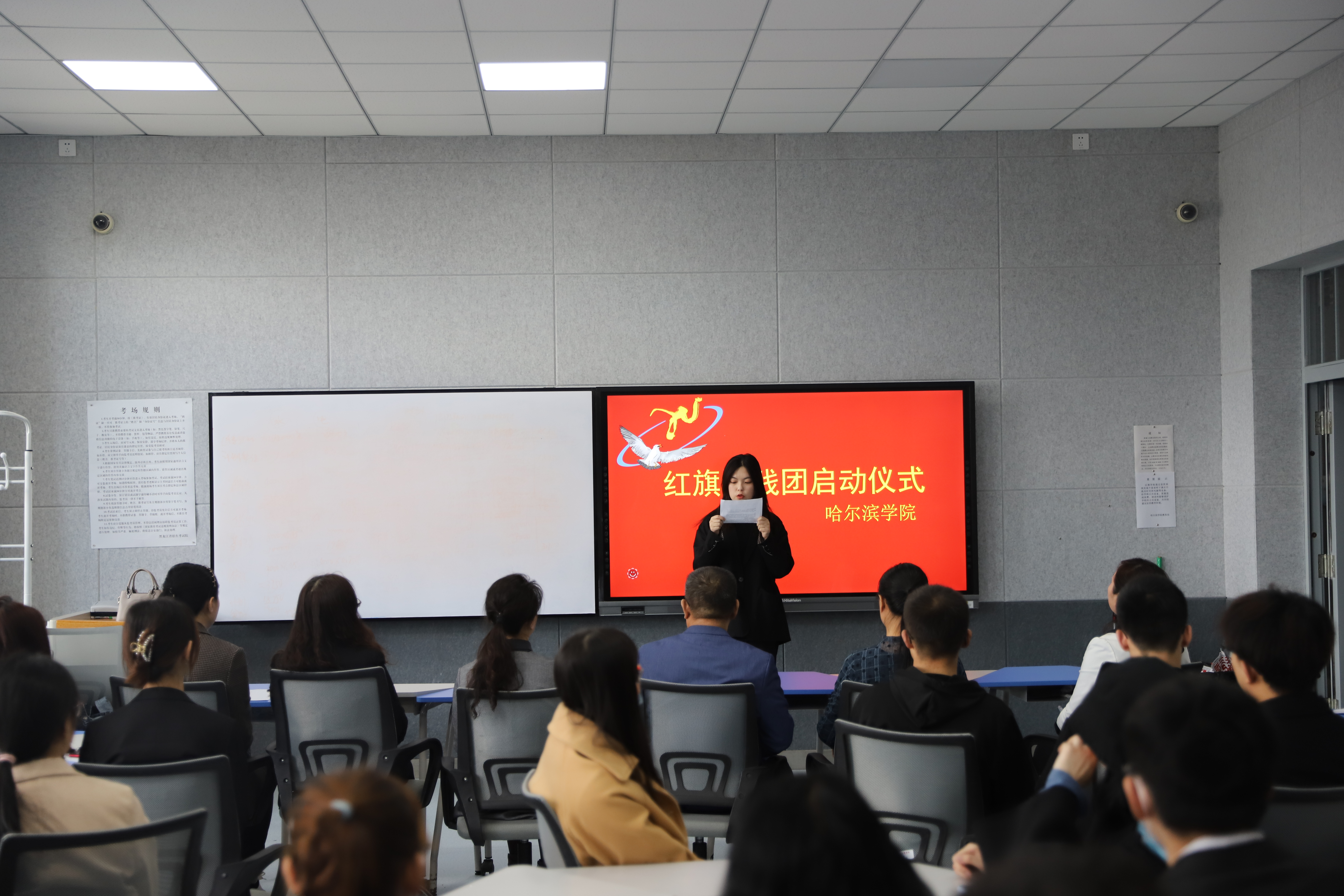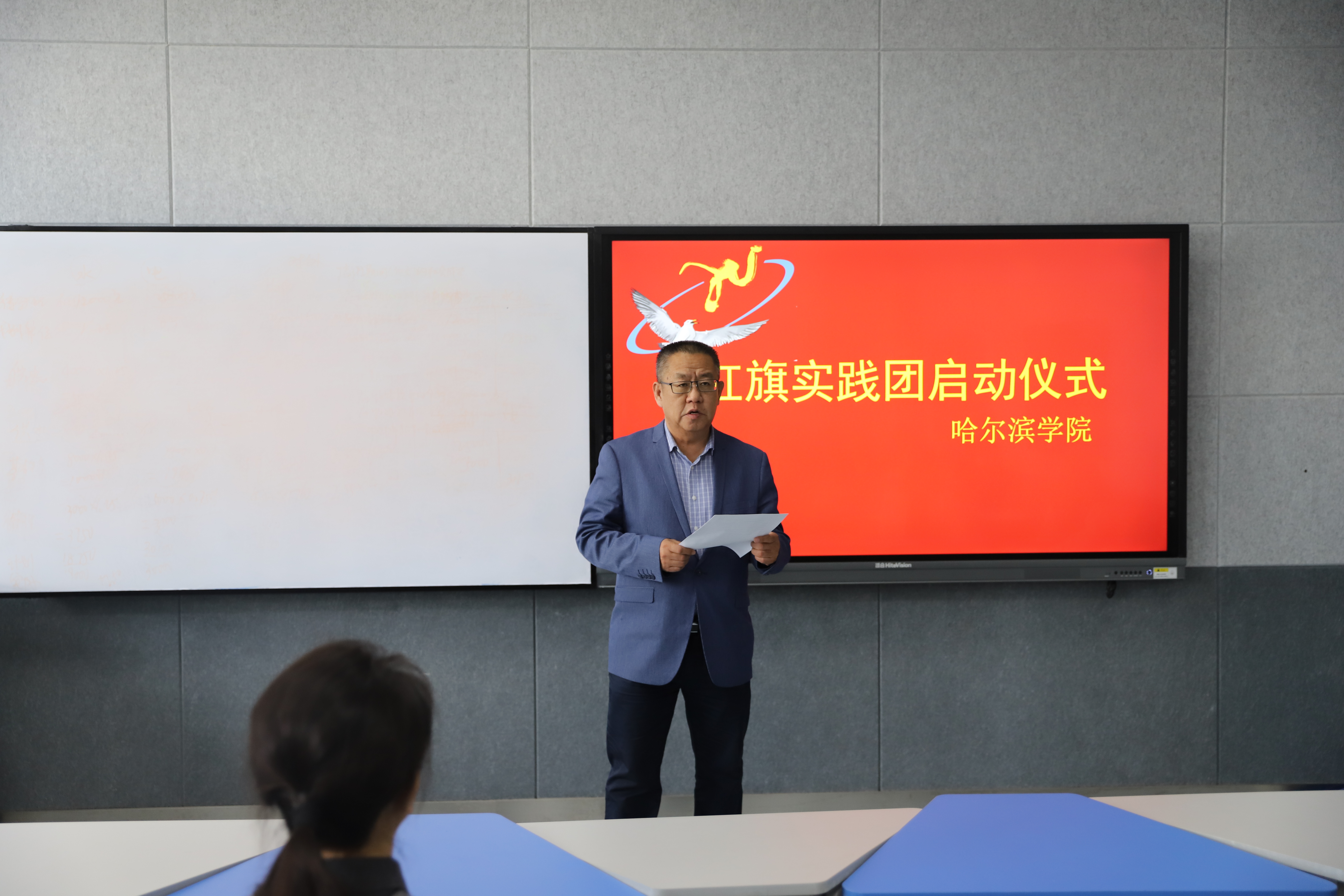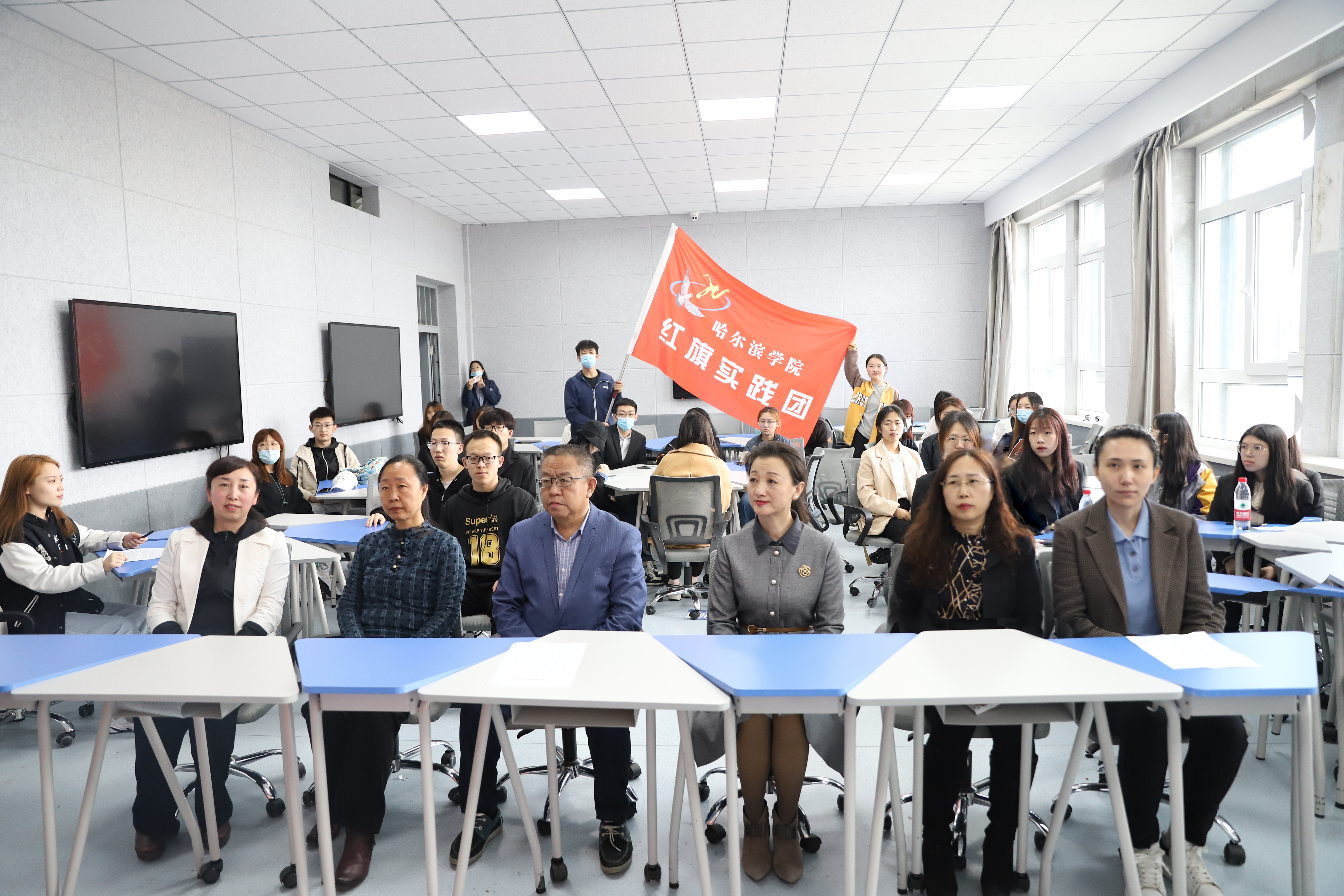 2021年4月28日星期三下午,马克思主义学院筹备、指导的红色社团“红旗实践团”正式成立,社团启动仪式在5608举行。参加启动仪式的有:马克思主义学院院长吴卫东、书记孙芳、教学副院长周惠杰,马克思主义学院实践教学管理办公室主任及“红旗实践团”指导教师安慧玉、思想政治教育系主任及“爱微益社团”指导教师王彩霞、习近平新时代中国特色社会主义思想概论课教研室主任顾博,马克思主义学院青年教师武胜男等。