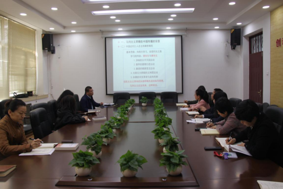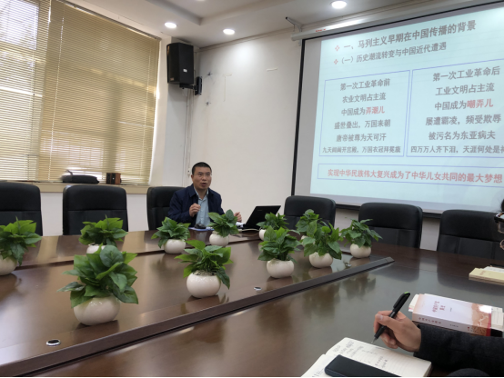 活动中,张仲广老师为支部全体院党员作了题为《一轮顷刻上天衢,逐退群星与残月——马克思主义早期在中国的传播》的讲座。张仲广老师从马克思主义早期在中国传播的背景、发展阶段、渠道和意义四个层面深入剖析了马克思主义在中国的生根与发芽,并用大量的史料深刻揭示和论证了马克思主义在中国成功的历史必然性和重大实践意义,引导大家更好地汲取继续前进的智慧和力量。