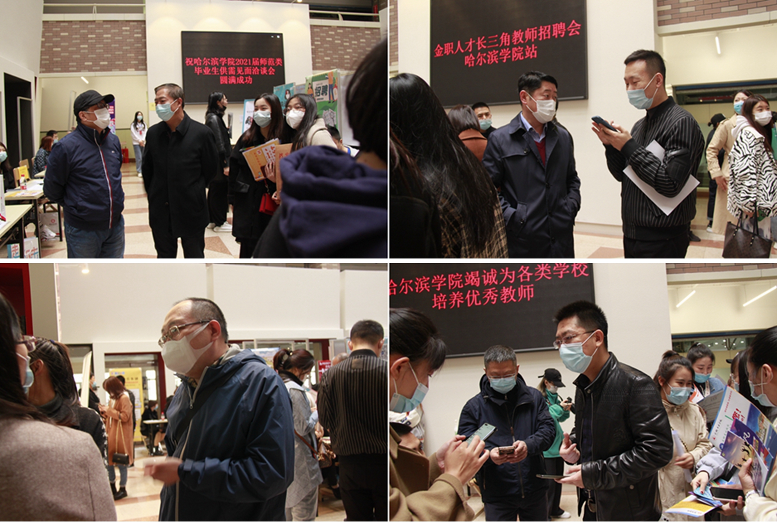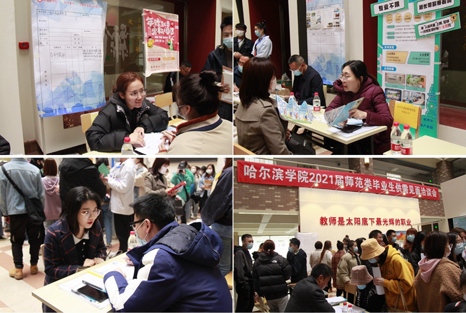 2021年3月以来,我们结合学校实际,采取“小规模、多频次”、“线上与线下相结合”的方式开展校园招聘活动。4月17日上午,哈尔滨学院2021届师范类毕业生春季学期专场招聘会在我校教师教育学院成功举办。于少鹏副校长莅临指导。