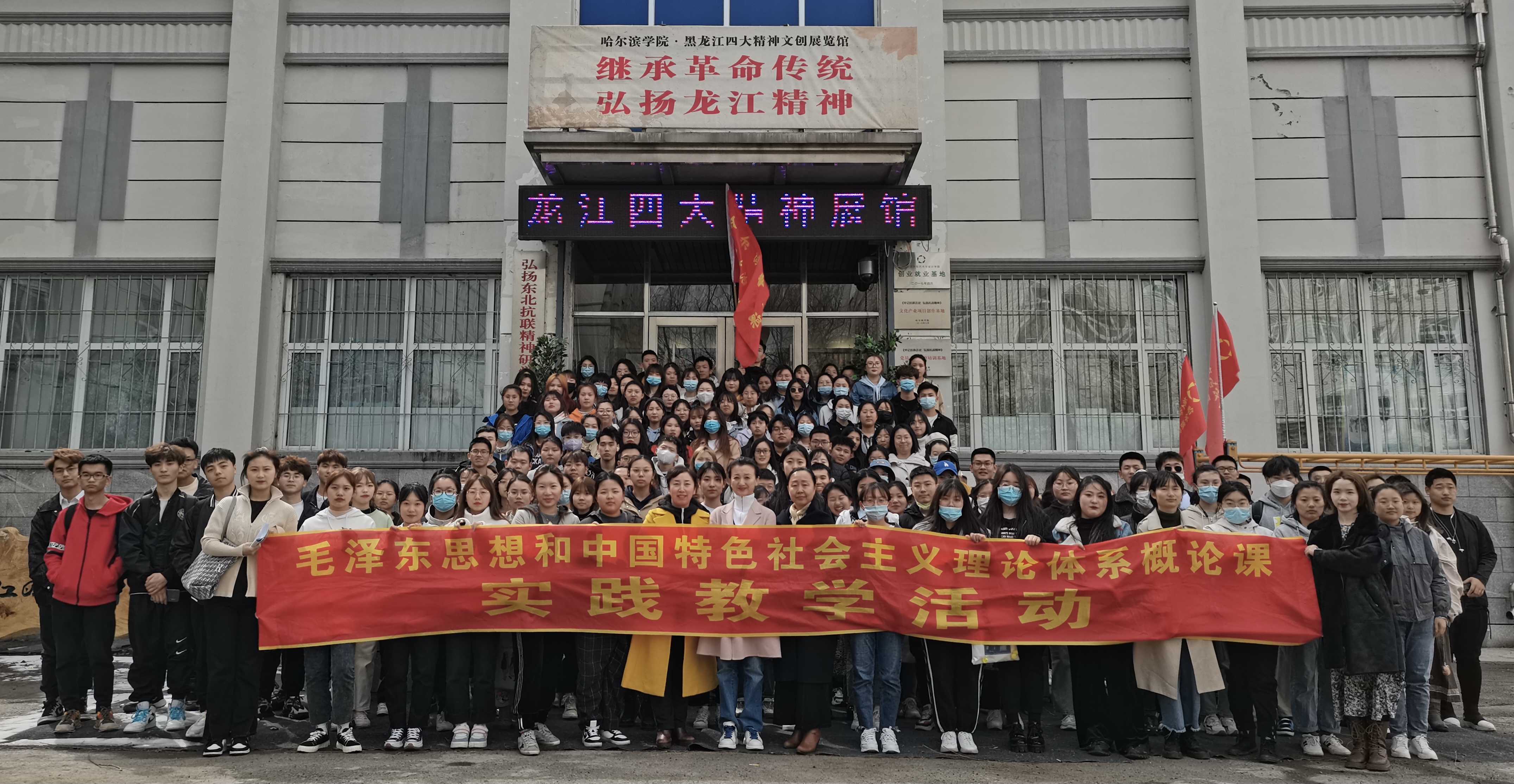 为庆祝中国共产党成立100周年,回顾党的光辉历程,讴歌党的丰功伟绩,继承革命先烈的优良传统,引导广大师生“知史爱党、知史爱国”,马克思主义学院思想政治理论课实践教学,本学期拟定“庆祝建党100周年”主题。结合实践主题计划开展百名大学生重走抗联路(参观调研)、百名大学生诵读“红色家书”,万名学生手绘党旗国旗等系列活动。