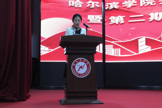 经济管理学院尚晶茹同学作为学员代表发言。她表示要珍惜培训机会,提升工作学习能力。服从组织管理,严明纪律规矩。提高团结意识,打造模范集体。学员们要以这次培训为契机,提升能力,增强本领,勇于当担、真抓实干。