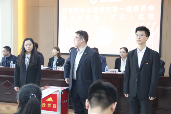 3月31日,共青团哈尔滨学院第一届委员会第二次全体(扩大)会议在丁香剧场317会议室召开,共青团哈尔滨学院第一届委员会全体委员,递补、增补委员候选人、校院两级学生组织负责人及优秀团员代表近200余人参加会议。
