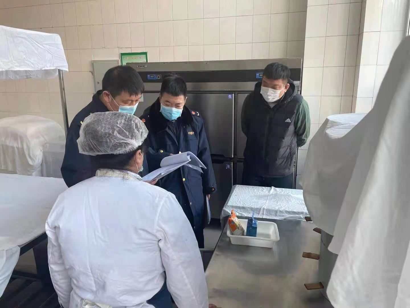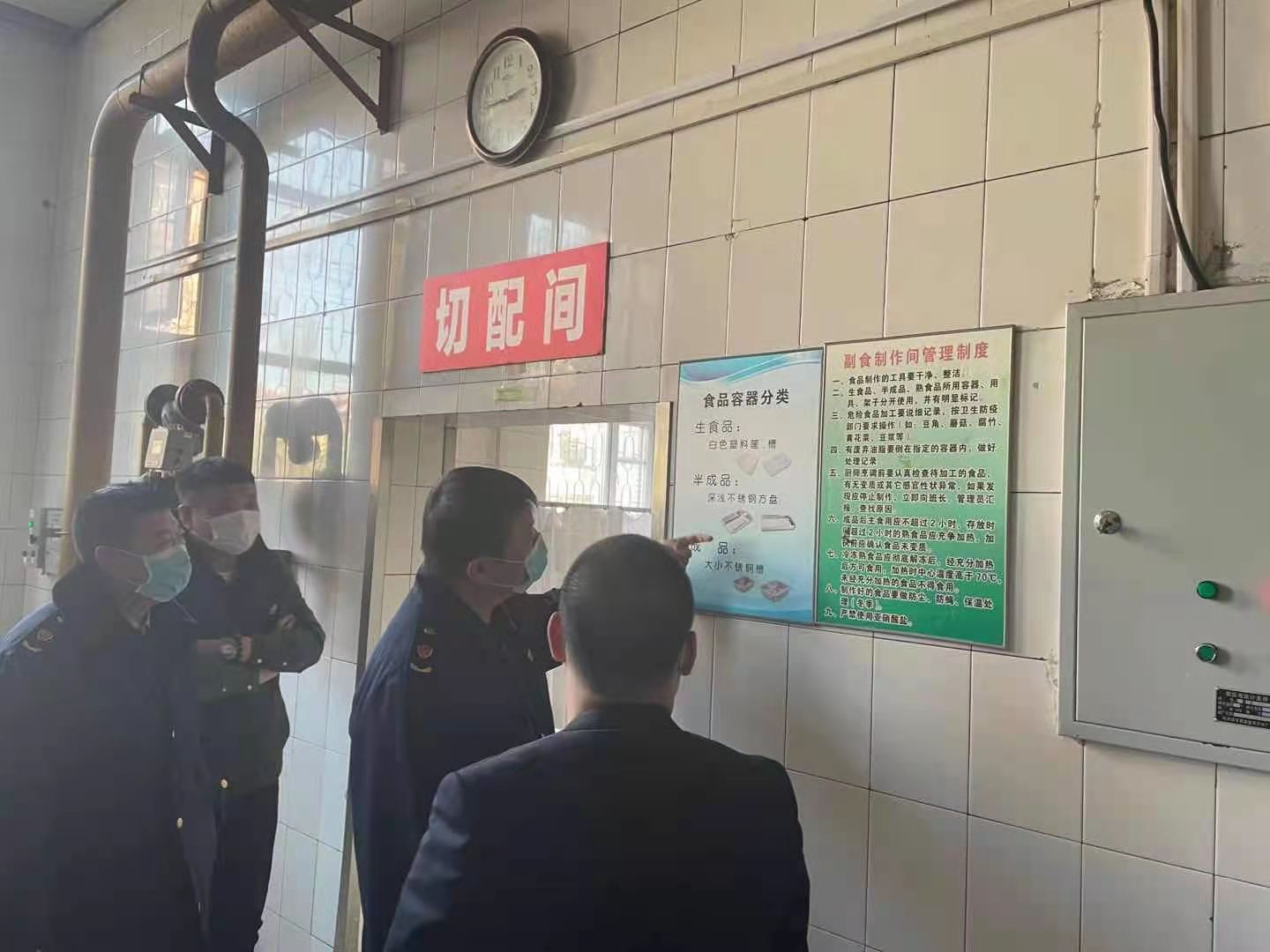 为保障师生饮食安全,3月23日下午,市场监督管理局餐饮科田堃科长一行三人到我校食堂进行疫情防控食品安全工作实地检查指导。