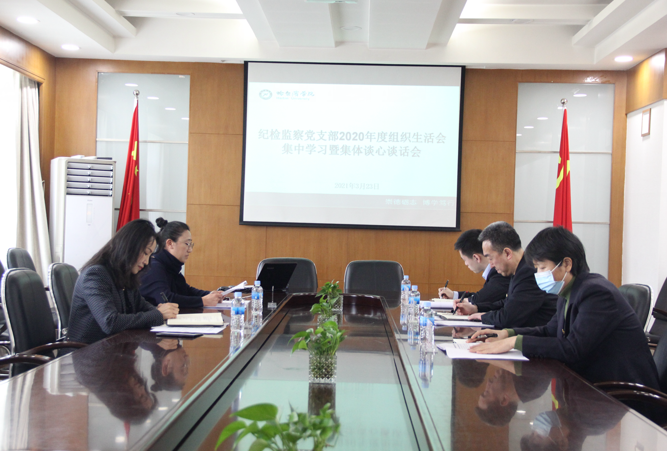 按照学校《关于召开2020年度基层党组织组织生活会和开展民主评议党员的通知》要求,纪检监察党支部通过精心组织、认真准备,于3月23日上午在行政楼417室开展了2020年度组织生活会集中学习暨谈心谈话会。校纪委书记马弘莉以普通党员身份参加学习,支部书记张虹主持会议。