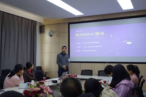 活动中,顾鹏老师对智慧树在线教学平台课程资源库进行了说明,对智慧树在线教学平台操作方式及特色功能进行了重点介绍;结合一流本科课程之线上线下混合式金课建设实例,对智慧树平台在线课程创建及课前、课中、课后教学实践路径等内容进行了详细讲解。