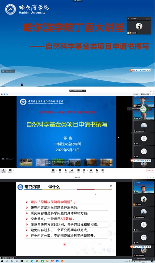 (文/张宏坤)为落实我校“科研强校”发展战略,提高学院教师自然科学基金类项目申报成功几率,提升科学研究水平。2022年5月21日上午9点,中国科学院大连化学物理研究所催化基础国家重点实验室,“有机光电材料与器件研究组”组长、国家自然科学基金委项目和科技部重点研发计划项目评审专家郭鑫教授应邀,以腾讯会议的方式为我院教师作题为“自然科学基金类项目申请书的撰写”的学术讲座。本次讲座由张宏坤副院长主持,食品工程学院全体教师和其他学院教师代表参加了本次讲座。